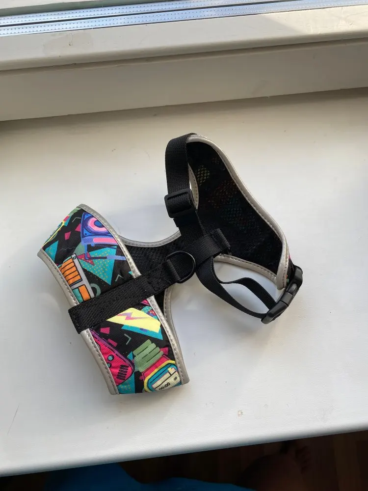 Очень понравилось качество. Приятный, плотный материал с дышащей сеткой. Все крепления надежно прошиты, светоотражающая полоса действительно светоотражает) Единственное: не сразу заметила, что поводок не идёт в комплекте, но это не страшно: шлейка пока большевата нашей кошке - при ходьбе у неё лапы через ворот вылазят. Дозакажем поводок отдельно. *Для меня кажется не совсем удобным одевание этой шлейки: горловина никак не расстегивается и приходится надевать через голову, от чего кошка явно не в восторге) Товаром довольна, если все будет хорошо, закажем шлейку и для собаки.