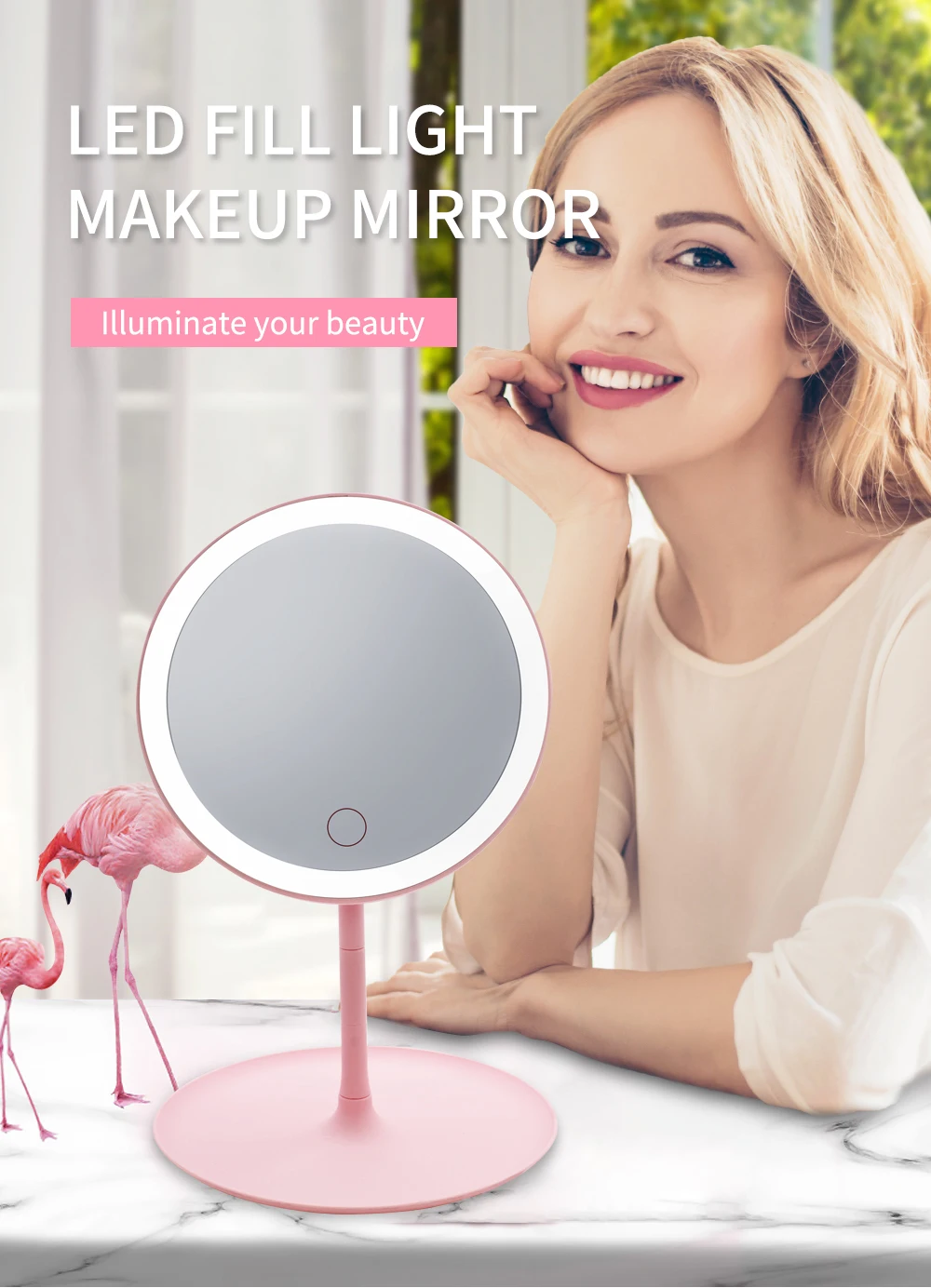 Светодиодное зеркало для макияжа с сенсорным управлением, светодиодное естественное освещение, заполнение регулируемым углом яркости, освещение, долгий срок службы батареи