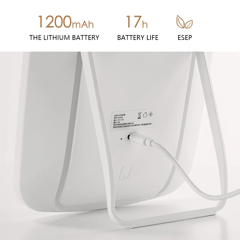 Сенсорное управление, светодиод естественным образом заполняет свет. Регулируемый угол, долгий срок службы батареи [Название] светодиодное зеркало для макияжа [Размер изделия] 23,8*16,8*2,5 см [Материал изделия] абс + стекло [Емкость аккумулятора] 1200 мАч [Размер упаковки] 170*41*260 мм