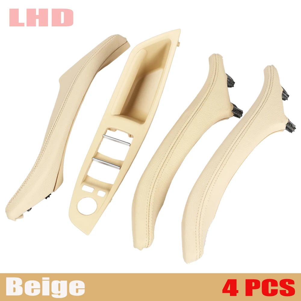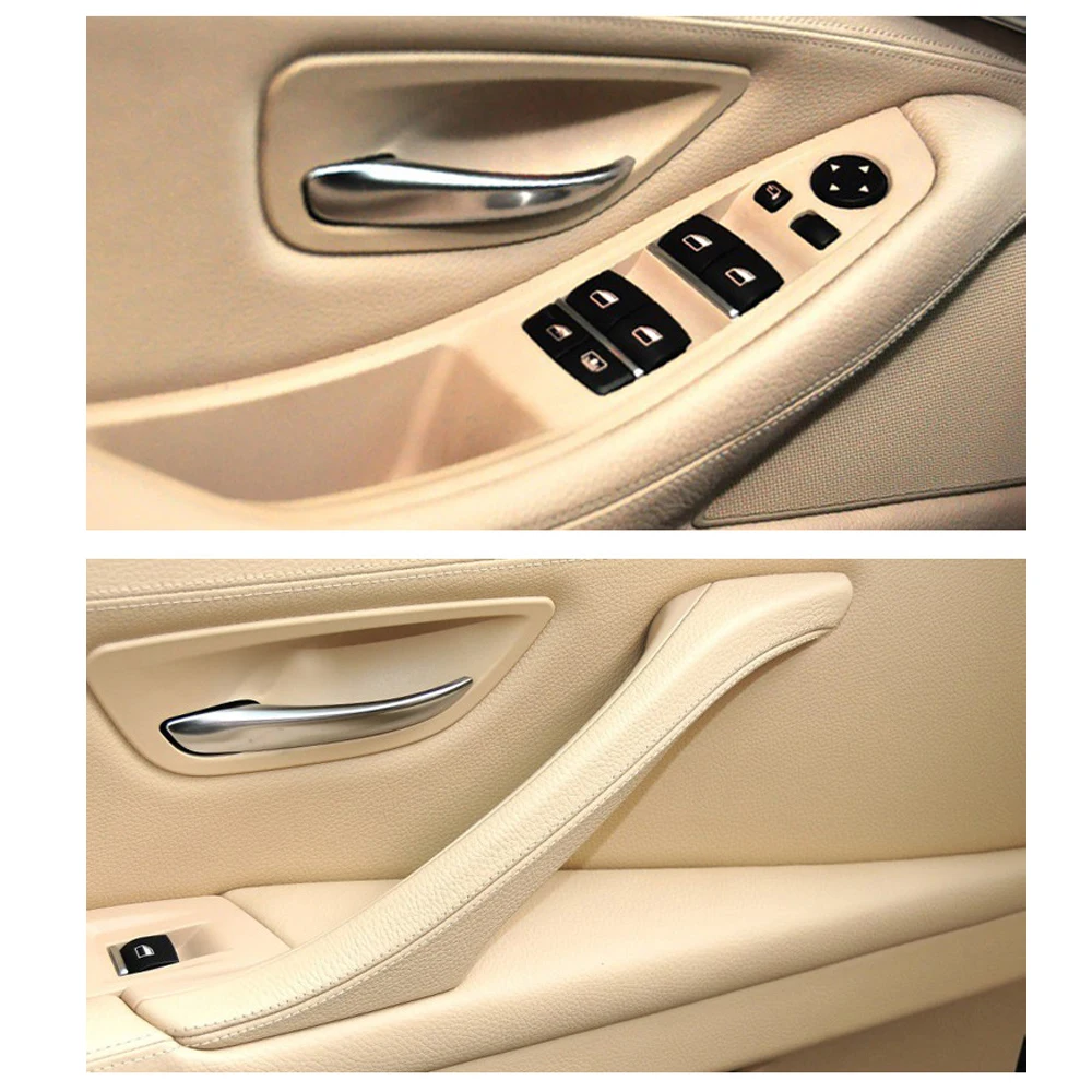 Чернаябежеваяустричная Автомобильная внутренняя дверная ручка из натуральной кожи, отделка панели LHD для BMW 5 серии F10 F11 F18 525d 530d 528i 535i
