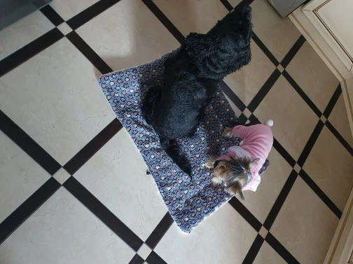 Подстилка мягкая, хорошего качества. Хотя подстилка полностью соответствует описанию, она не подойдёт для собак, которые спят на полу, потому что слишком тонкая. Я и моя собака довольны пришедшим заказом :)