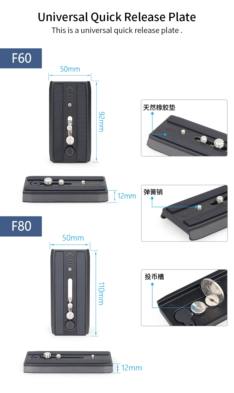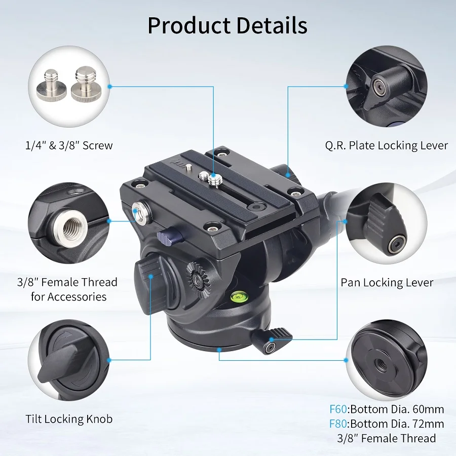 Бренд INNORELМодель F60/F80Материал: алюминиевый сплавЧистая Вес 0,86 кг/1,1 кгМаксимальная нагрузка 10,0 кг/12,0 кгВысота 104 мм/110 ммДлина ручки 27-41 смДиапазон наклона-52 ° ~ + 91 °/-72 ° ~ + 91 °Нижний диаметр. 60 мм/72 ммНижний винт 3/8"Q.R. размер пластины 50 мм × 92 мм/50 мм × 110 мм