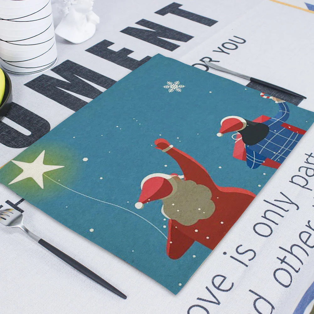 Рождество мультфильм индивидуальный стол счастливый Рождество Санта печать детская чашка мат на стол для кухни салфетки чашки колодки