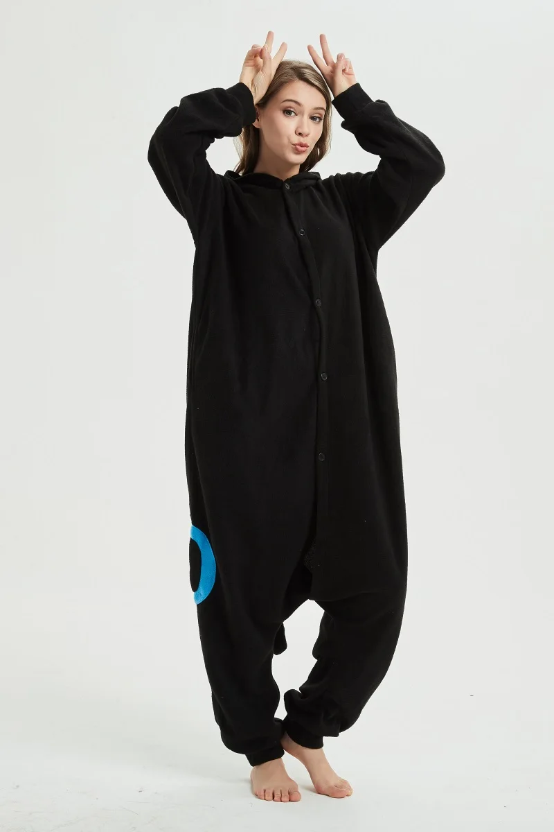 Синий черный Umbreon кигуруми аниме мультфильм пижамы для взрослых унисекс пара Onesie флис наряд теплая одежда для сна милый костюм