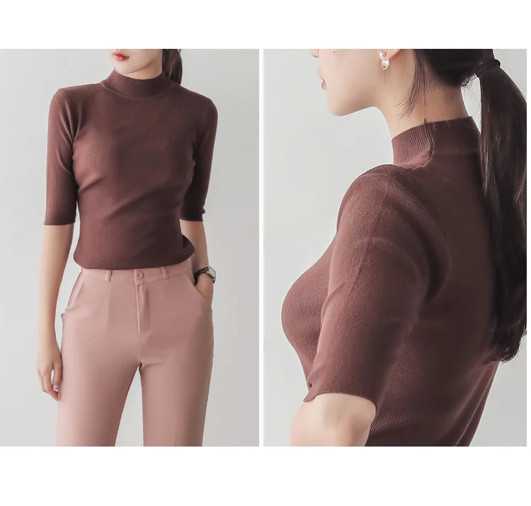 Женский вязаный пуловер gkfnmt, мягкий шикарный свитер с воротником до локтя, эластичный джемпер с рукавами до локтя в Корейском стиле на весну-осень