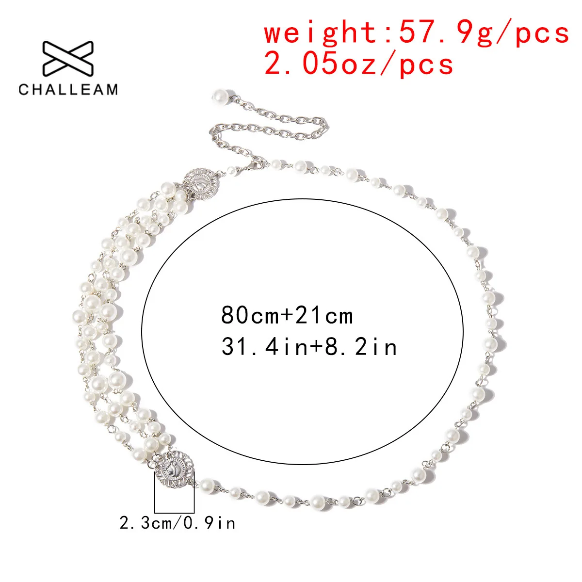 Описание продукта: Материал: сплав, жемчуг Цвет: серебристый Длина: 101 см Обхват талии: 50 см-95 см Особенность: жемчужной сережкой дизайн