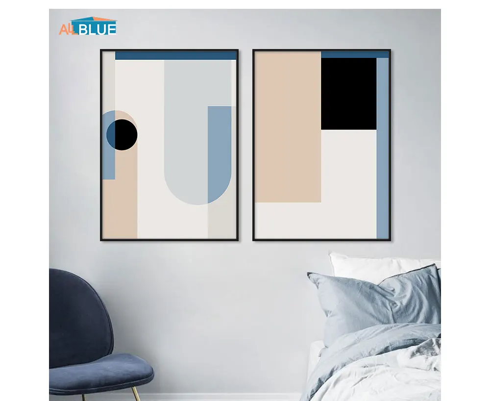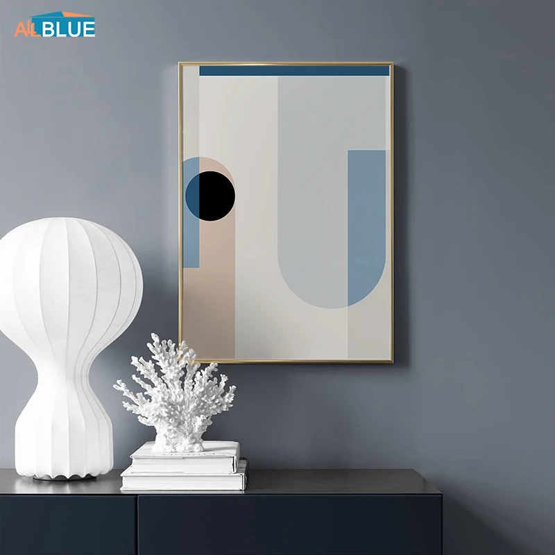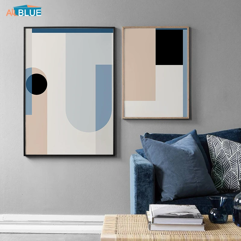 Абстрактная синяя геометрическая форма настенная живопись винтажная холст с печатью постера минималистская Настенная картина для гостиной домашний декор