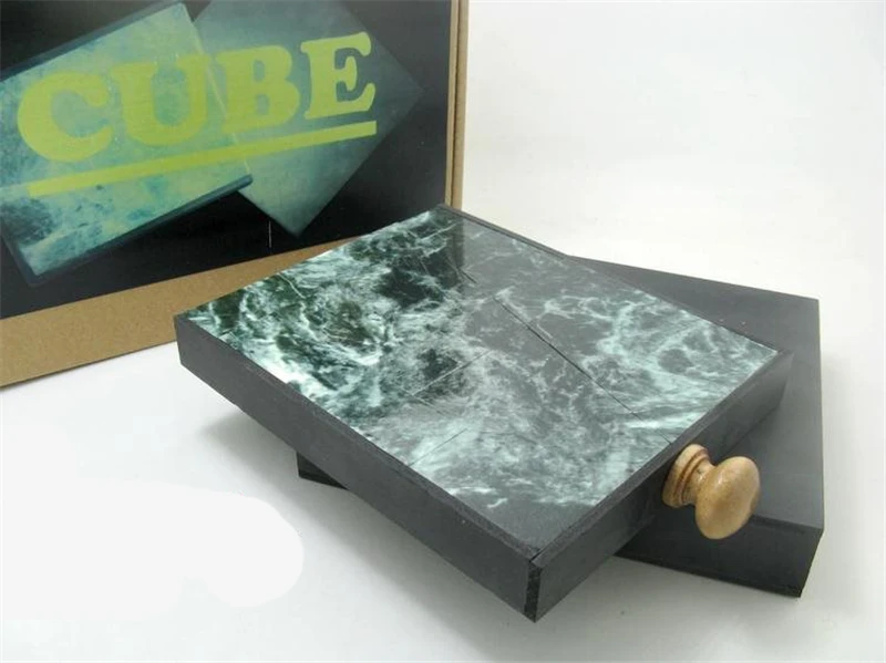 Pete Biro удаляет 10 мраморных деревянных блоков из красиво украшенной деревянной коробки.