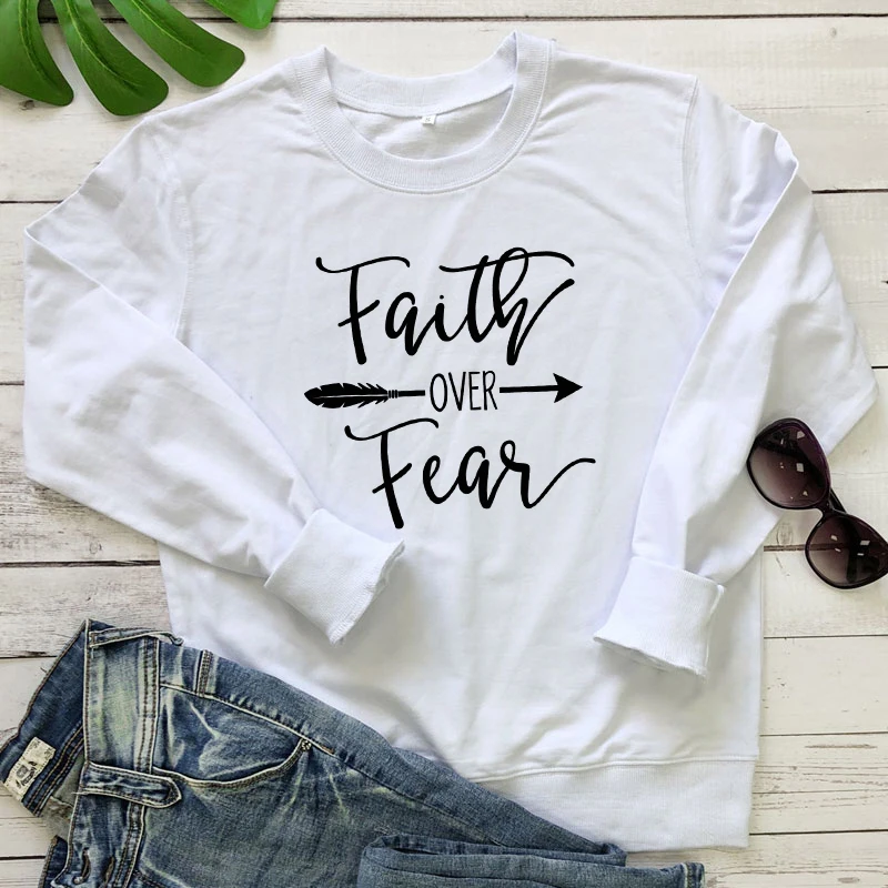 Женский свитшот с принтом Вера за страх, христианская толстовка с надписью стрелы, пуловеры для религиозной церкви, повседневные вдохновляющие худи, весна-осень