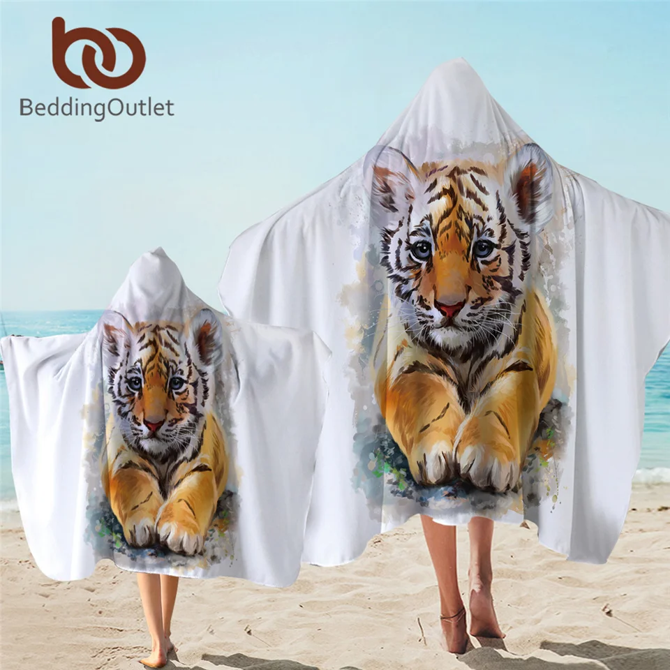 BeddingOutlet полотенце с капюшоном Тигровая лиса, акварельное банное полотенце из микрофибры с капюшоном, дикие животные, поделки