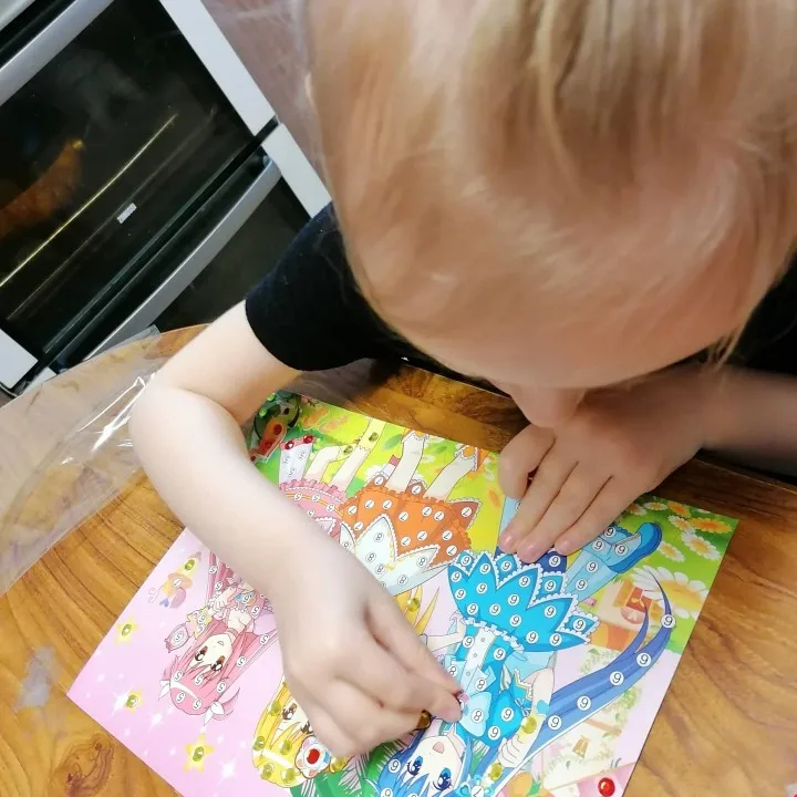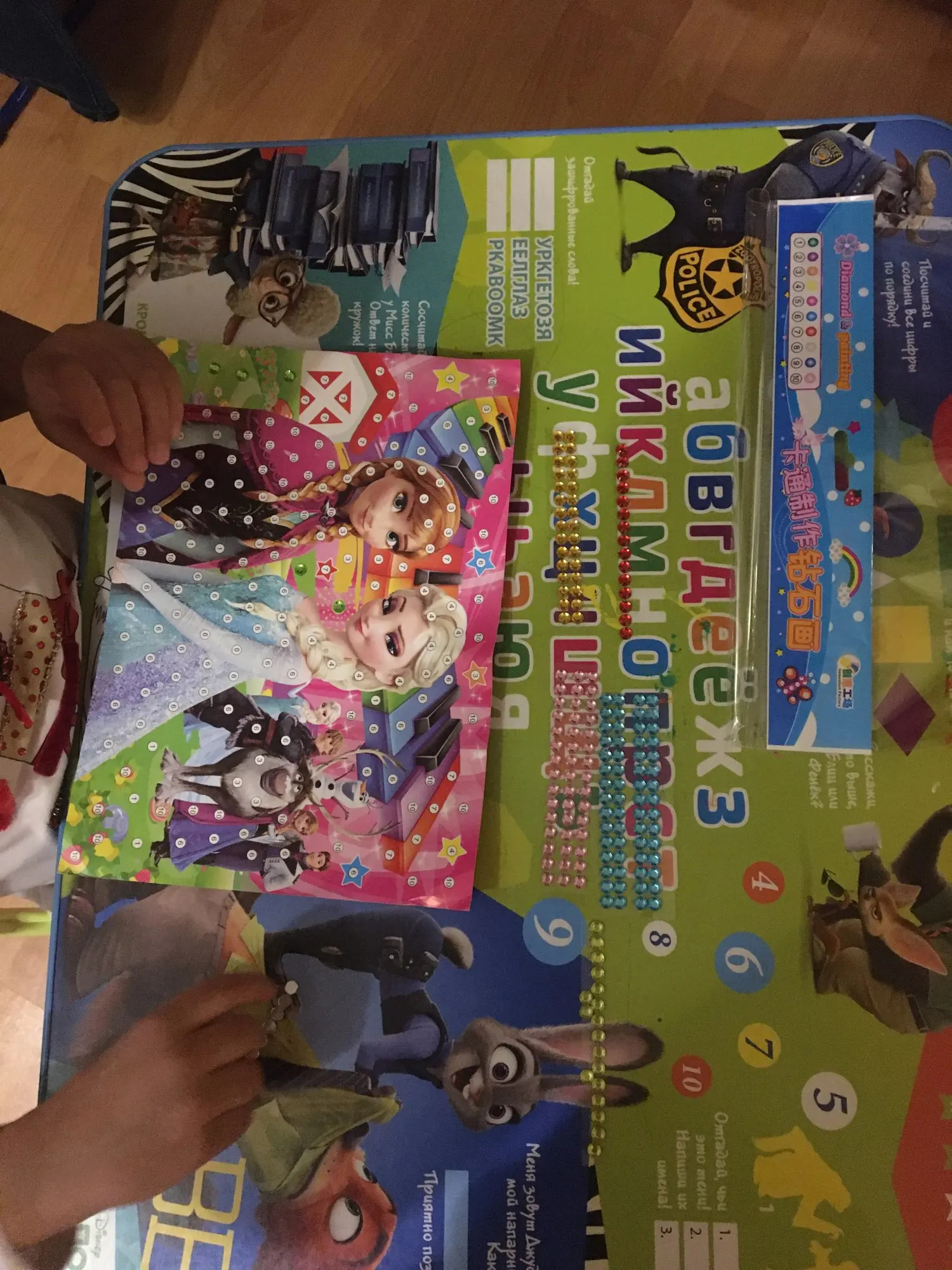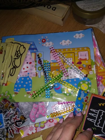 Классный набор. Оформление Картинки с песком вызвало восторг. Наклейки объемные интересные. Покупала ребёнку 2,8 лет. Доставка в Италию занимает 2 недели. Продавец отправляет товар через пару часов после оплаты- сверхбыстрый!!