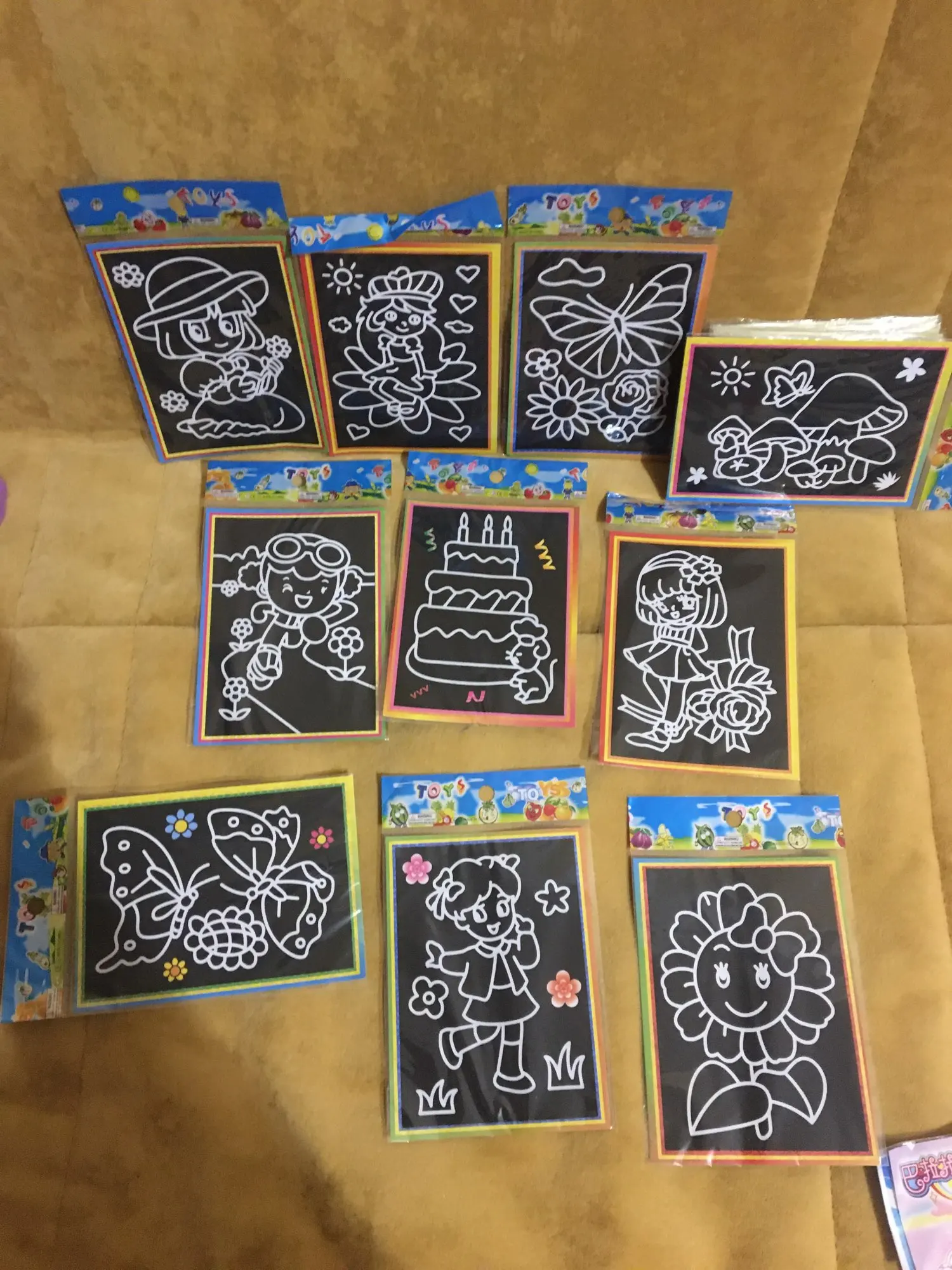Я думаю, что это очень хорошо, чтобы провести дни. Для детей 4-6 лет это нормально. У него есть 2, чтобы поставить блестящие, 10, чтобы поцарапать, 10 покрасить песком и 10 наклеек (я думаю, что это будет то, что моей дочери нравится больше всего)