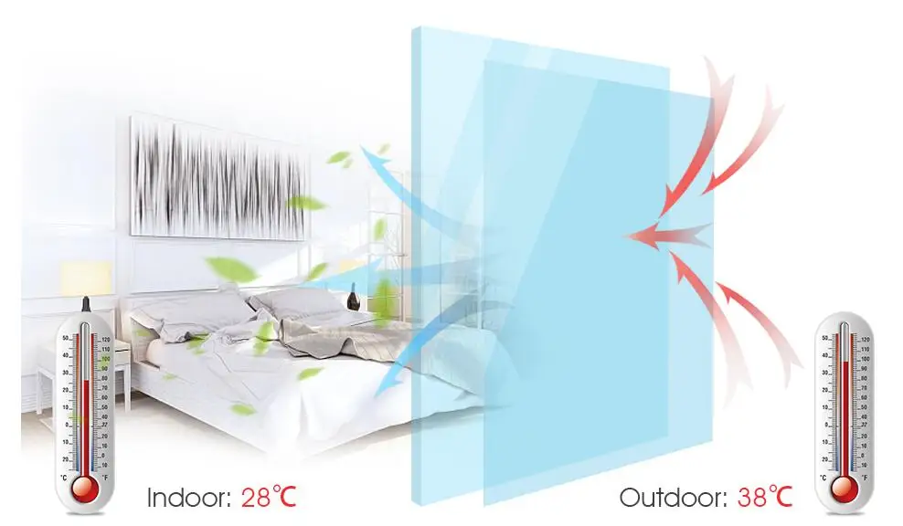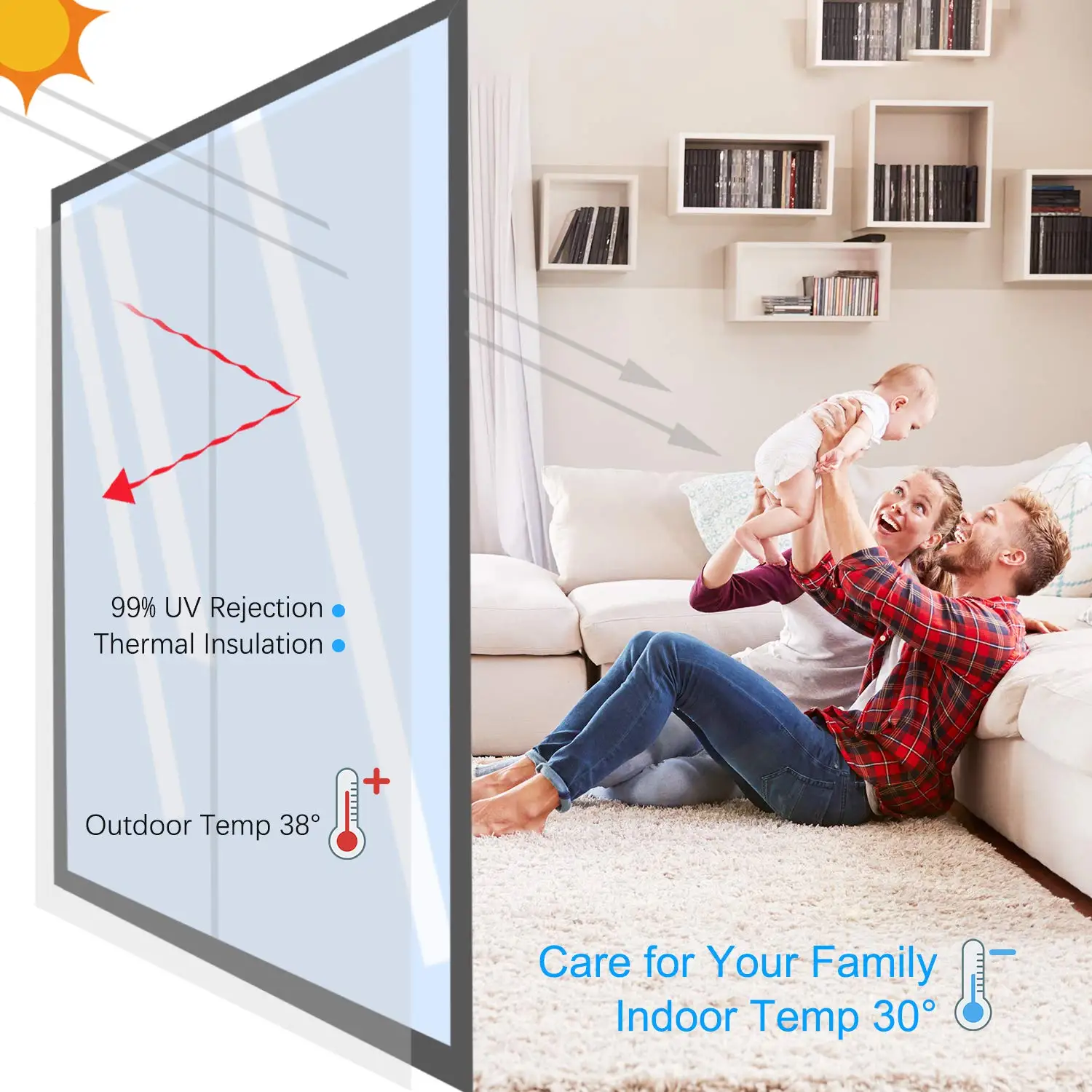 УФ-Защита:Попрощайтесь с 96% УФ-лучей, которые могут повредить вашу кожуВиниловая пленка для окна с термоконтролем сохраняет тепло зимой и сохраняет его в воздухе летом