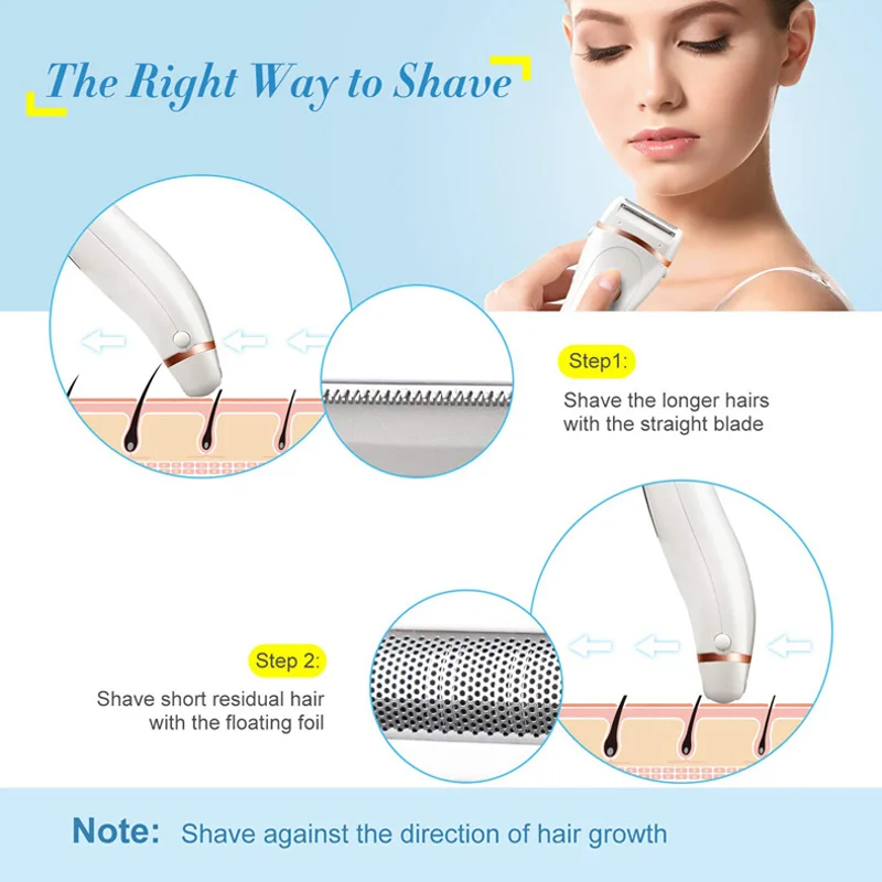 ---- 3 в 1Лезвия: 3 лезвия эффективно и полностью удаляют Волосы на теле. CЛезвие для подмышек и линии бикини; Плавающая фольга для остаточных коротких волос; Прямое лезвие для рук иНожки.