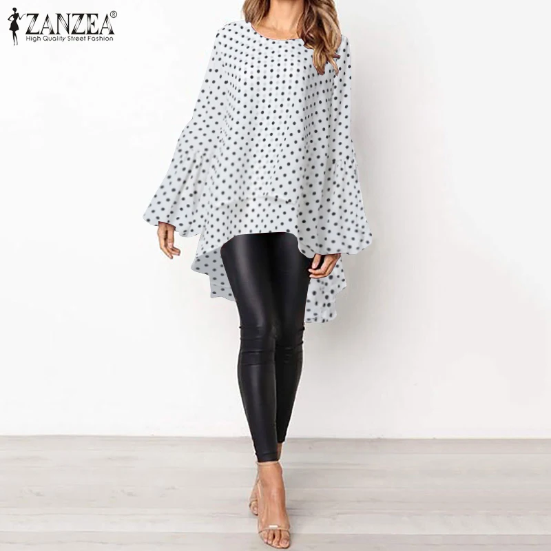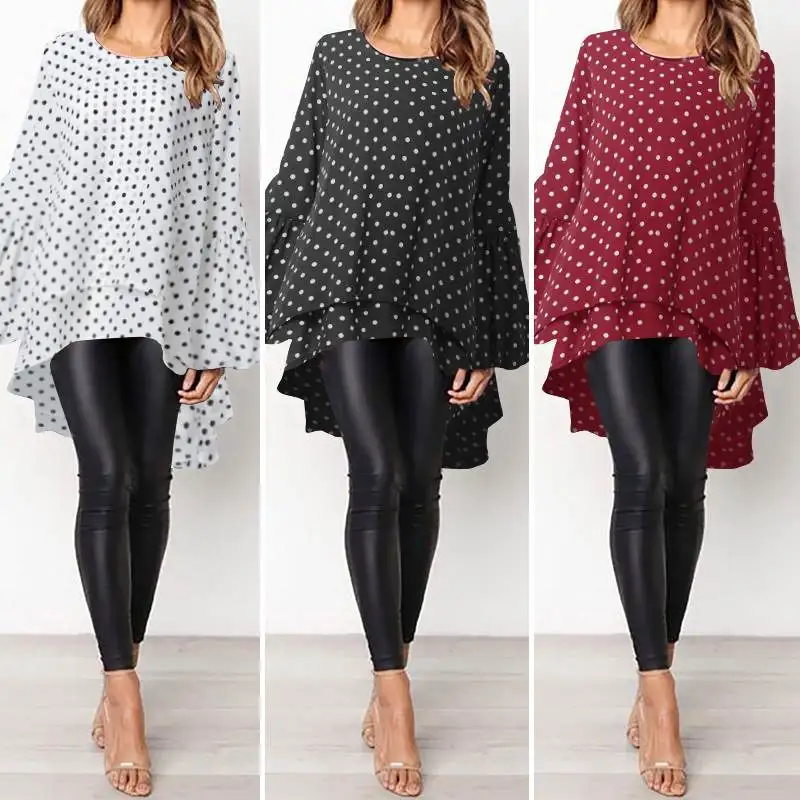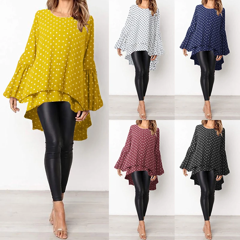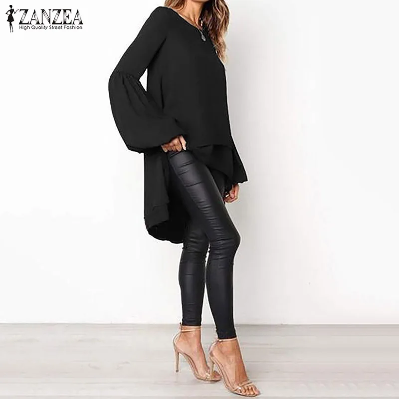 Женская ассиметричная блузка с рукавами-фонариками, однотонная, 2021