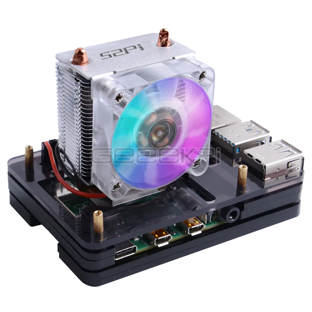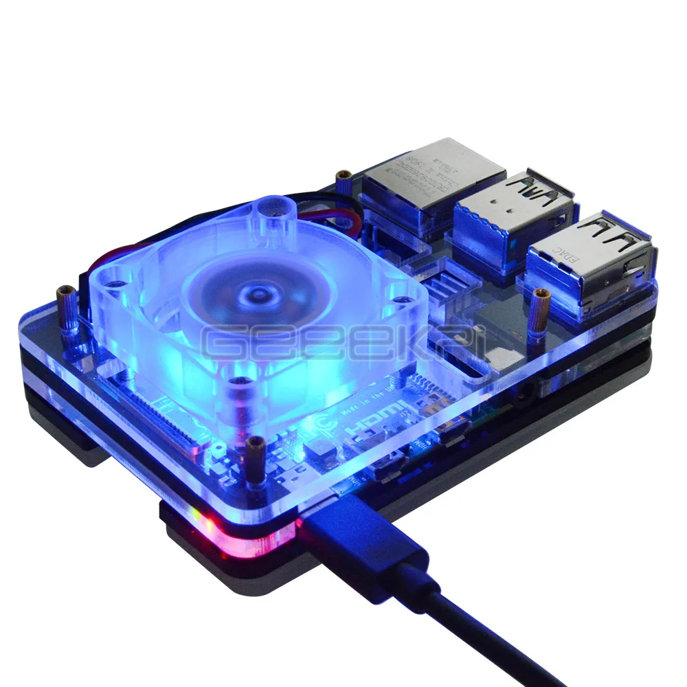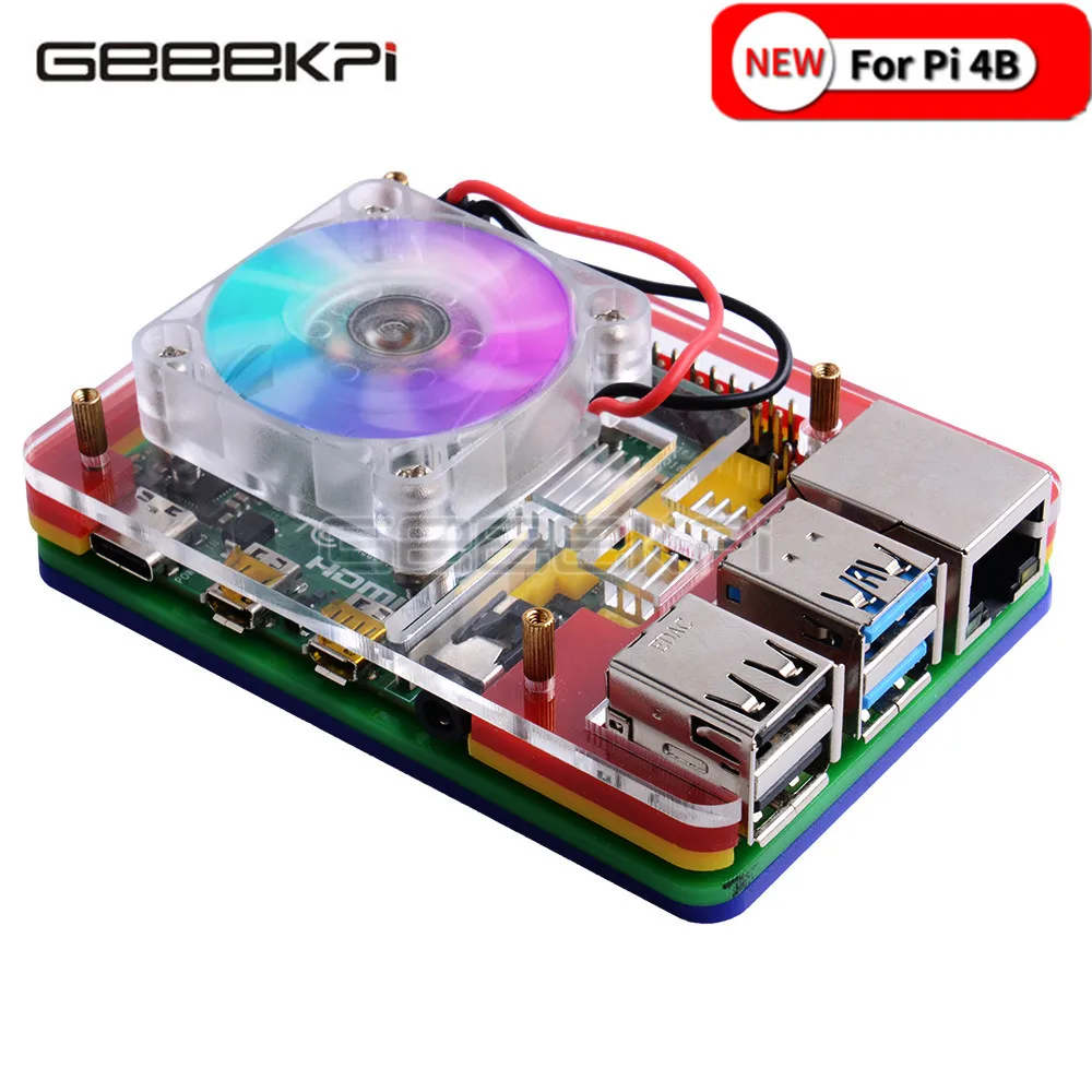 Новый 5-слойный акриловый прозрачный (прозрачный и черный)черныйцветной чехол GeeekPi с охлаждающим вентилятором для Raspberry Pi 4B ICE TOWER