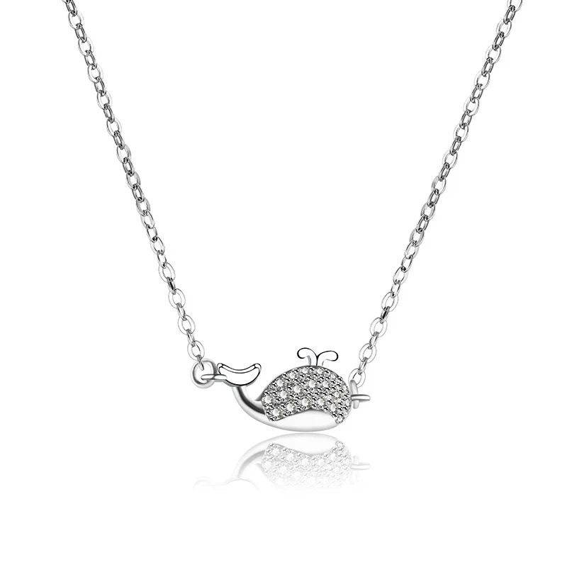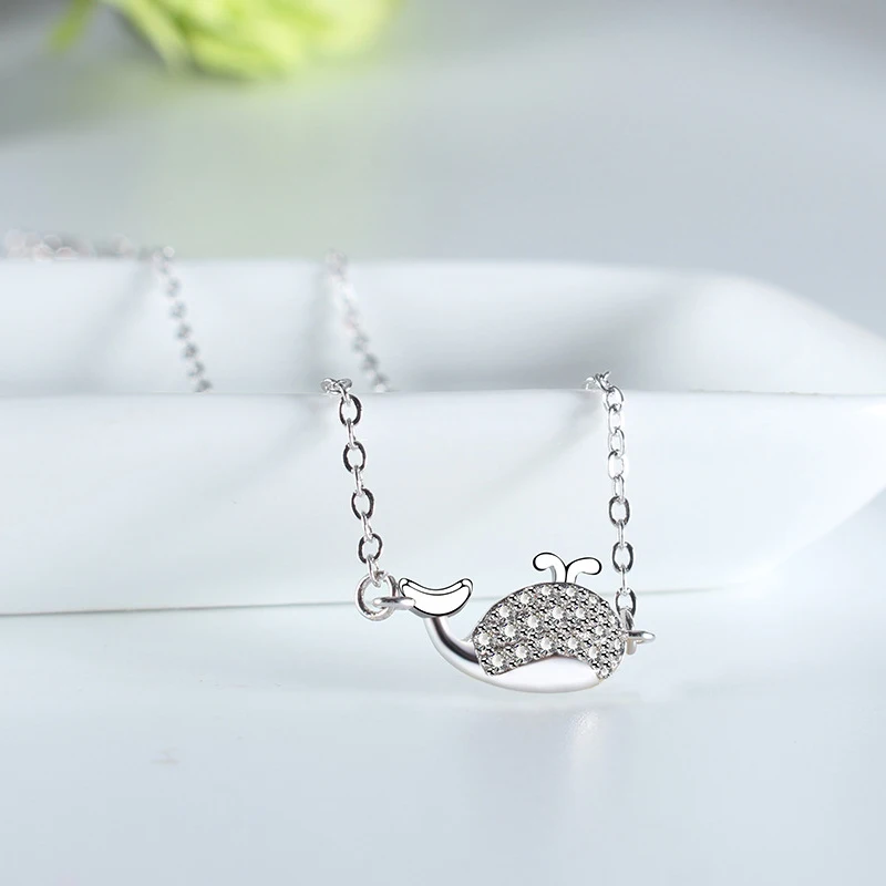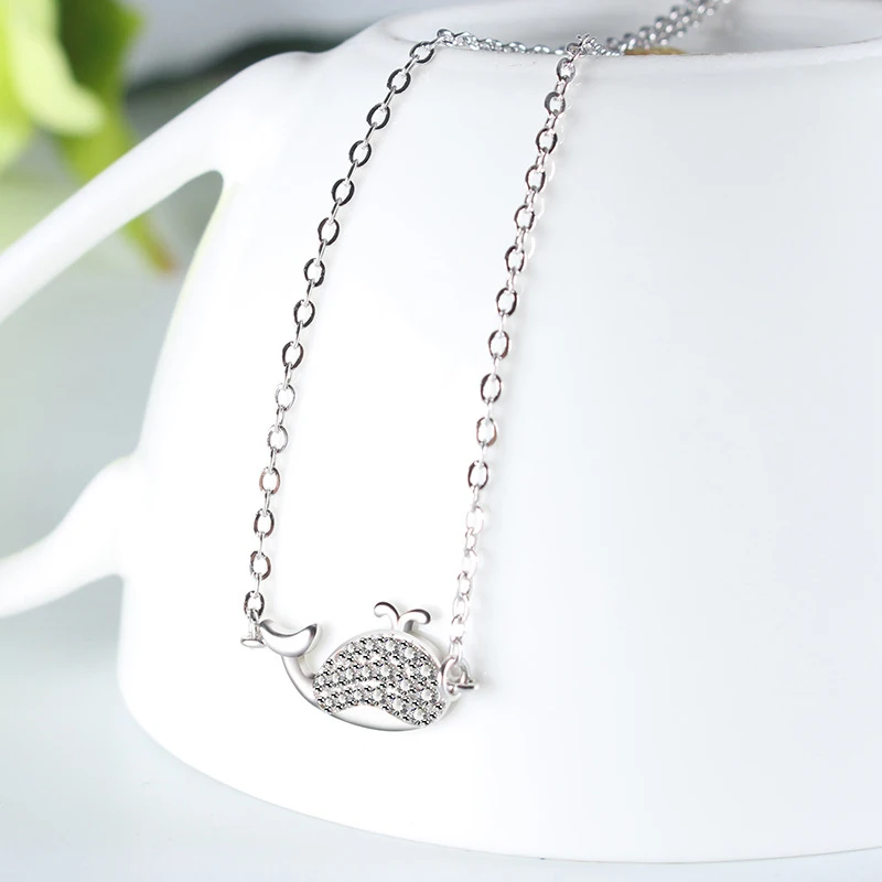 925 стерлингового серебра изящный милый ожерелье с Китом цепи ошейник колье подвеска с полным блестящее циркониевое Ювелирное Украшение с изображением животных, S-N428