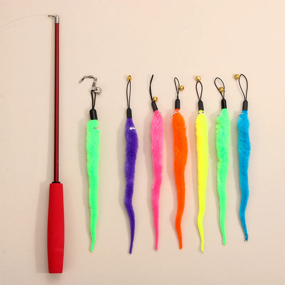 Новый Кот забавная палочка товары для домашних животных разноцветный плюш моделирование гусеницы форма кошка игрушки с бубенчиками аксессуары для домашних животных