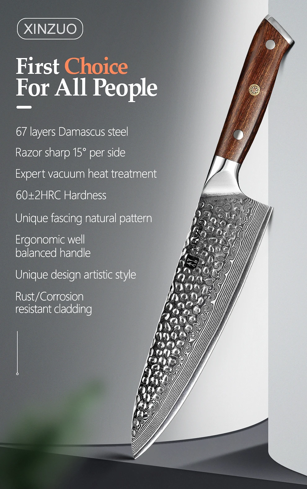 XINZUO Yu серия дамасский стальной нож шеф-повара