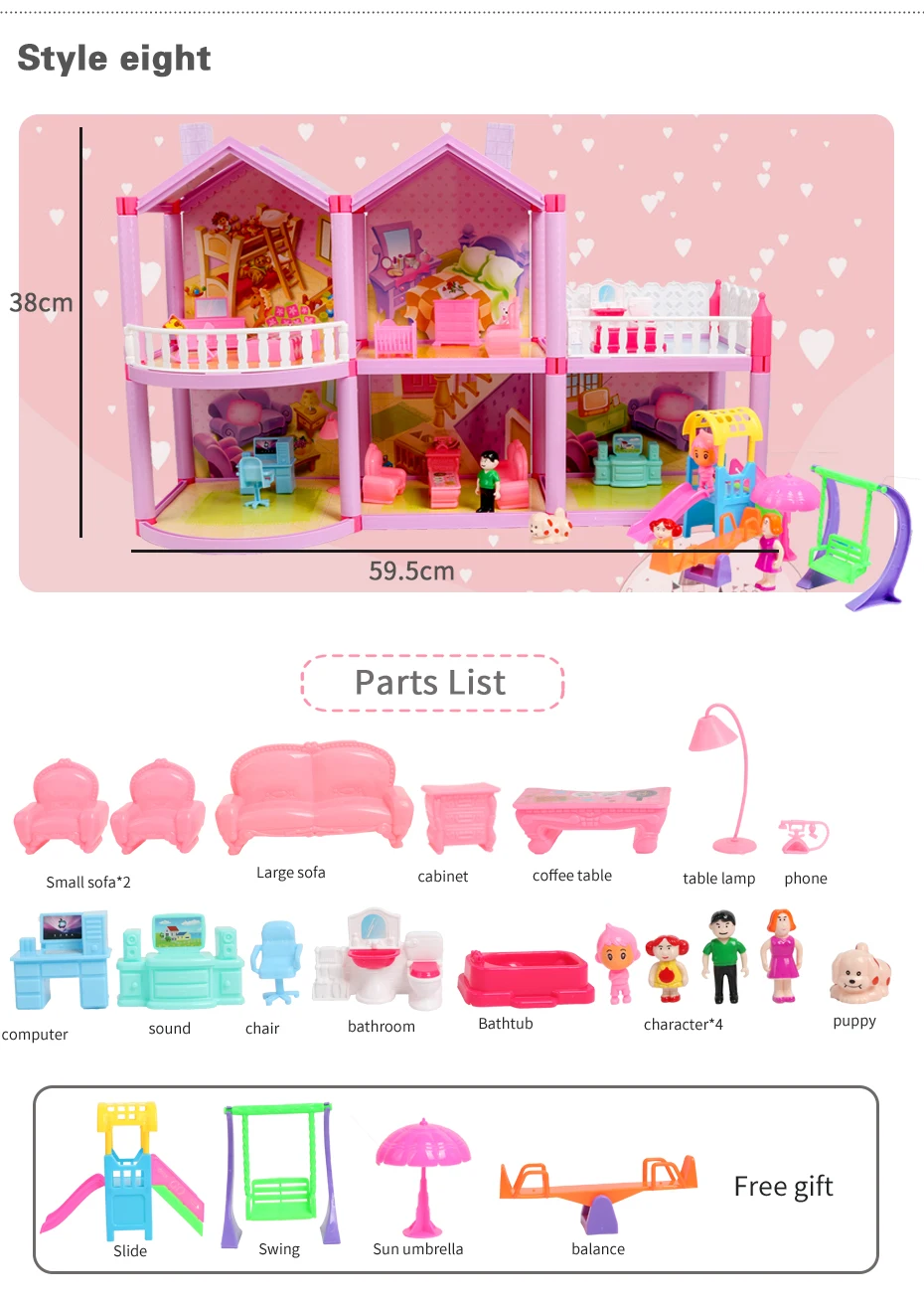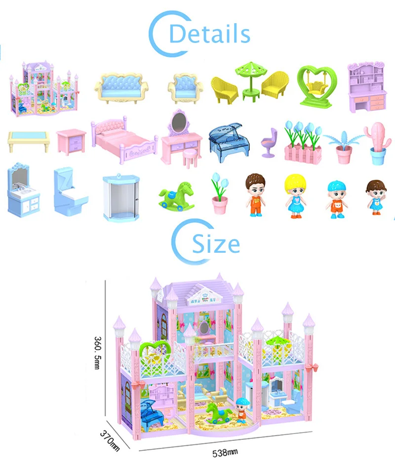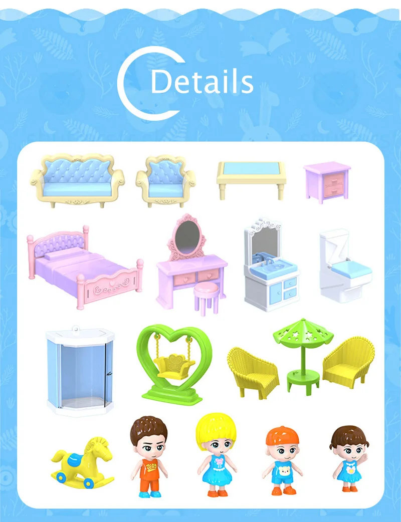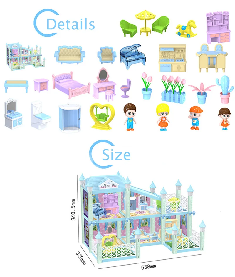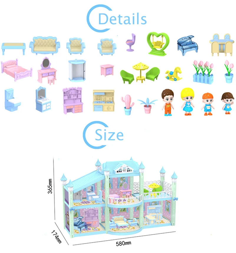1. Материал: АБС-пластик 2. Хороший игровой помощник для детей 3. Вы получите кукольный домик со всей мебелью, такой же, как на картинке. 4. Цвет: каждый стиль имеет 2 цвета s, мы отправим случайным образом. Обратите внимание. 5. Реальный цвет изделия может светильник отличаться от изображения на сайте из-за многих факторов, таких как яркость вашего монитора и ярсветильник 6. Товар не включает оригинальную упаковочную коробку, мы отправим его в полиэтиленовом пакете, чтобы сэкономить на стоимости доставки. 7. Из-за того, что инструкции некоторых стилей напечатаны на оригинальной цветной коробке, если вы получили ее без инструкции, свяжитесь с нами, чтобы получить инструкцию.