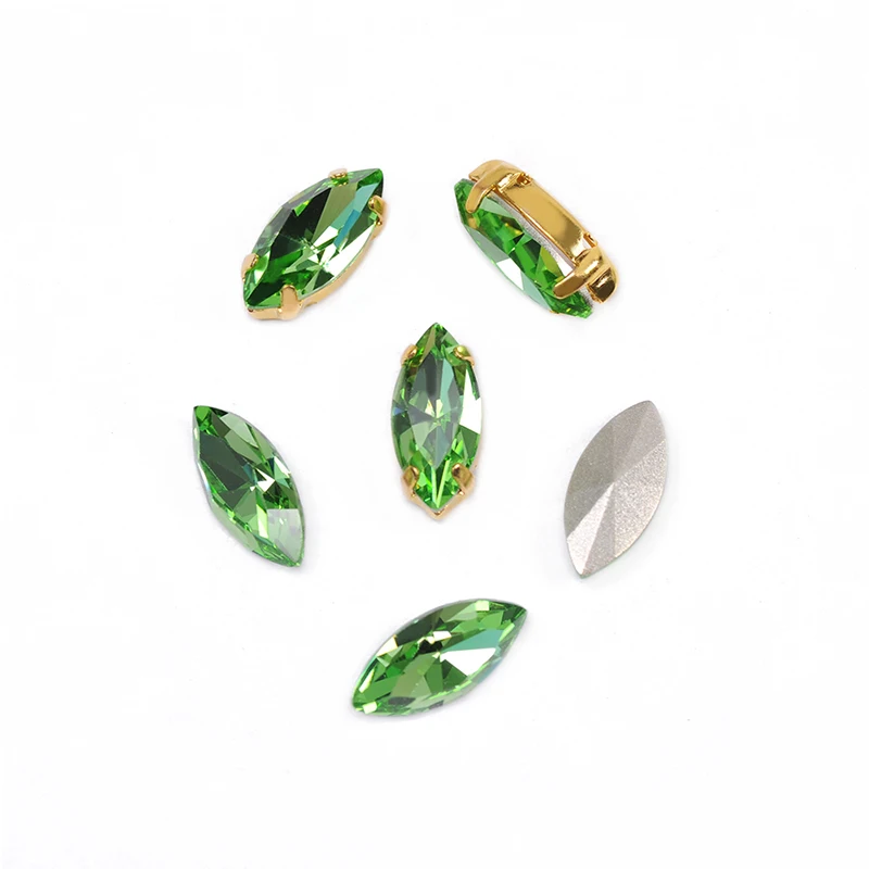 Yanruo 4200 все размеры Перидот забавные маркизы камнями цвет серебристый, Золотой схватка Strass удлиненный Кристалл Стразы для шитья