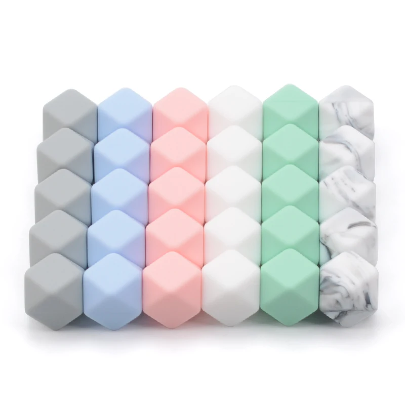 10 шт., шестигранные силиконовые бусины для прорезывания зубов, 14 мм