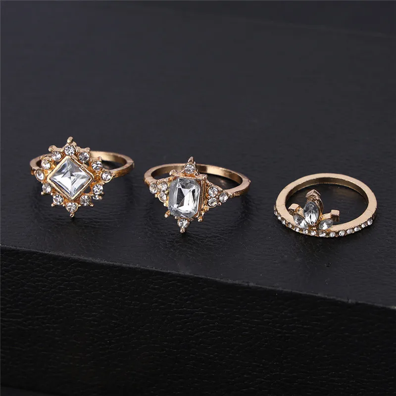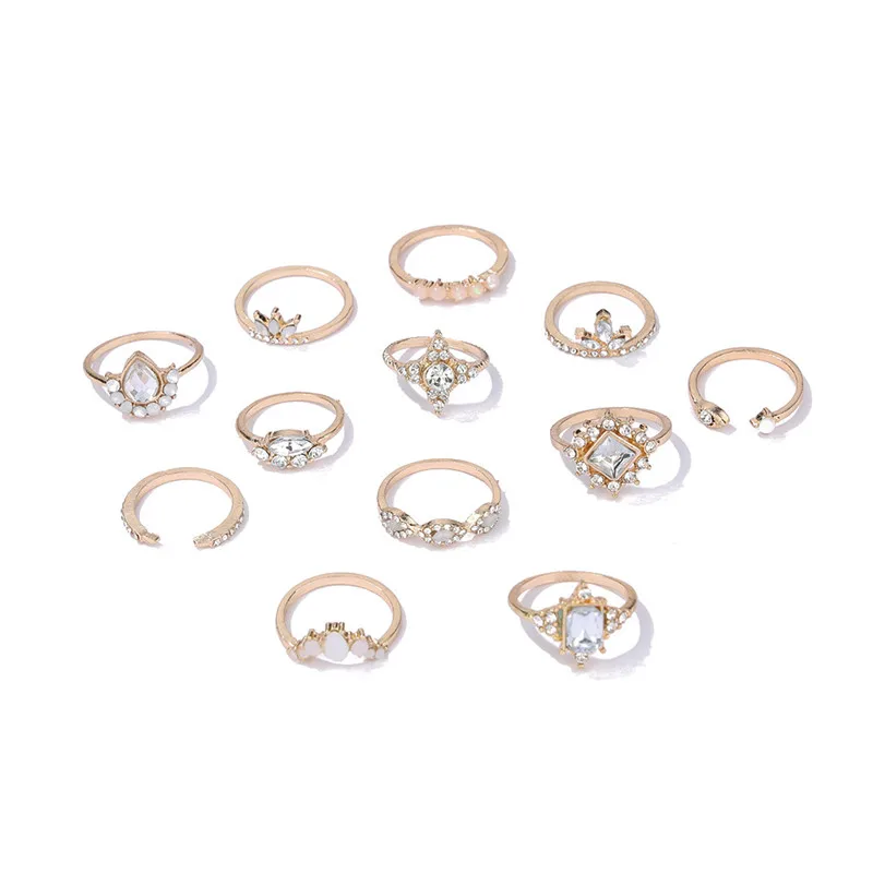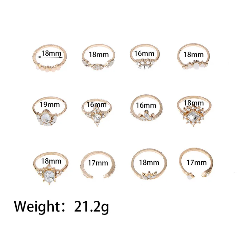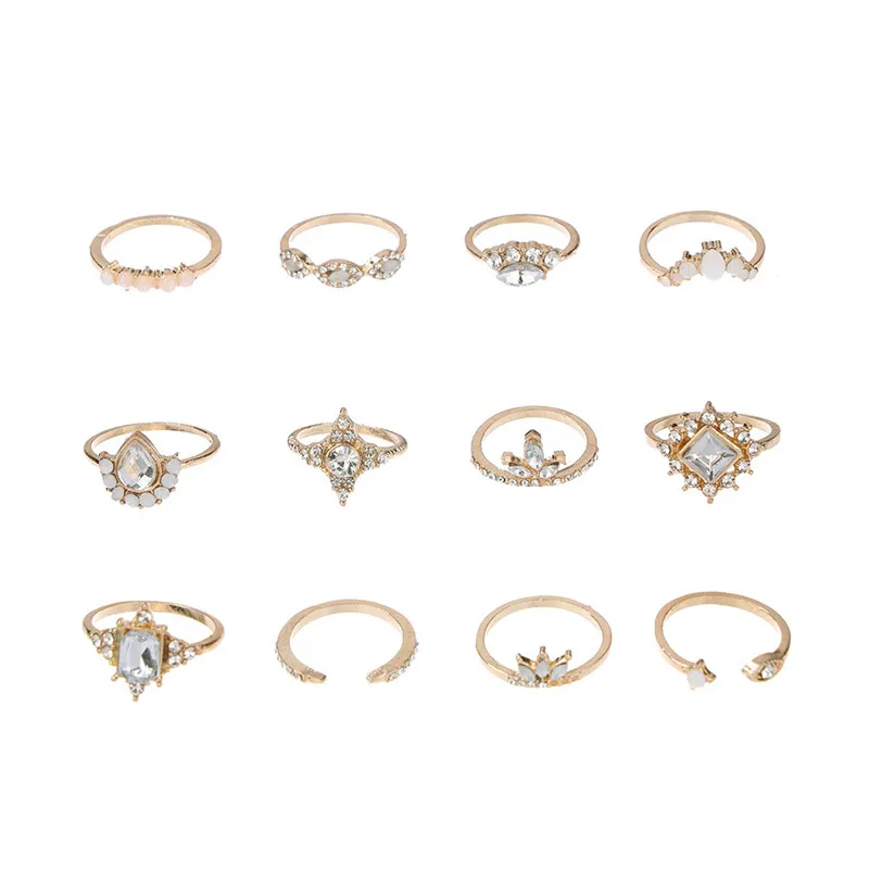 WUKALO 12 шт.компл. женское Винтажное кольцо из золота кольцо с цветком из циркона пробы с кристаллом, очаровательное кольцо в стиле бохо ювелирное изделие Свадьба Помолвка