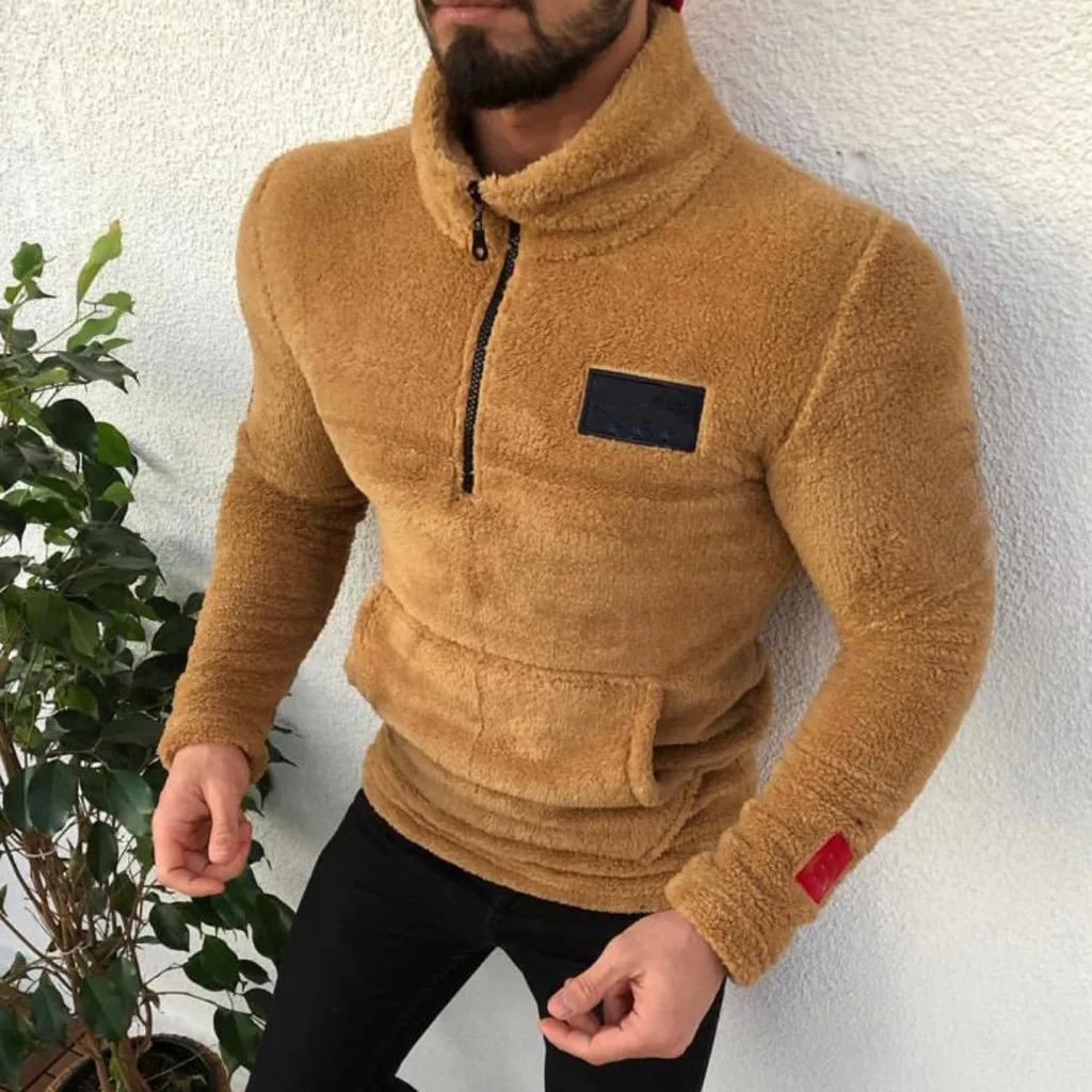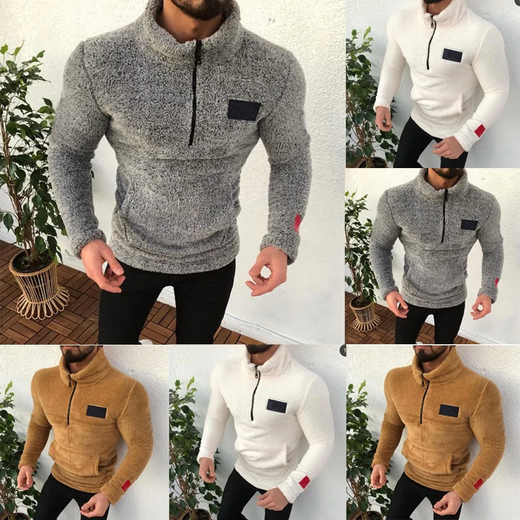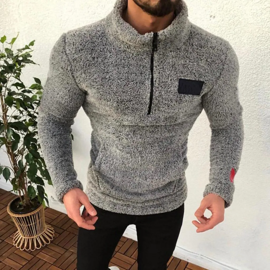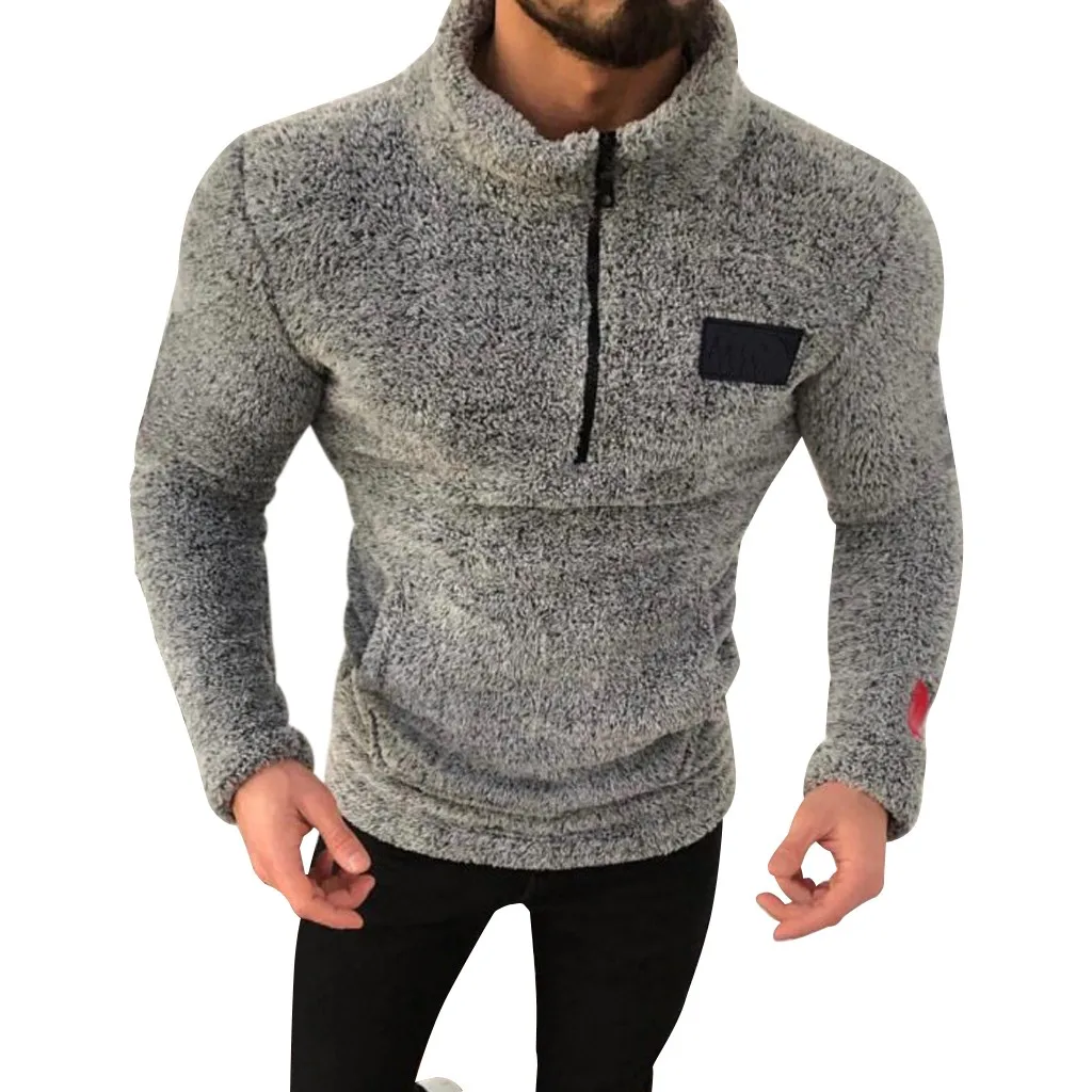 Мужской свитер с высоким воротником на молнии, однотонная санитарная одежда, флисовый пуловер, блузка, S-2XL, большие размеры, Осень-зима, pull homme