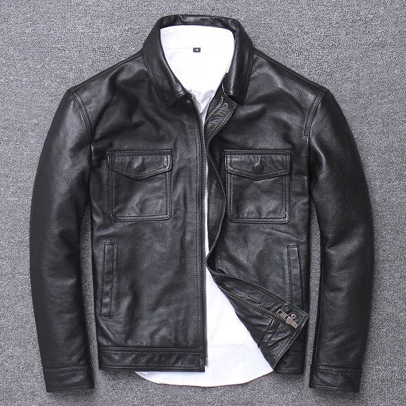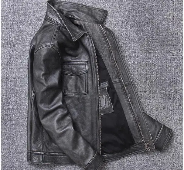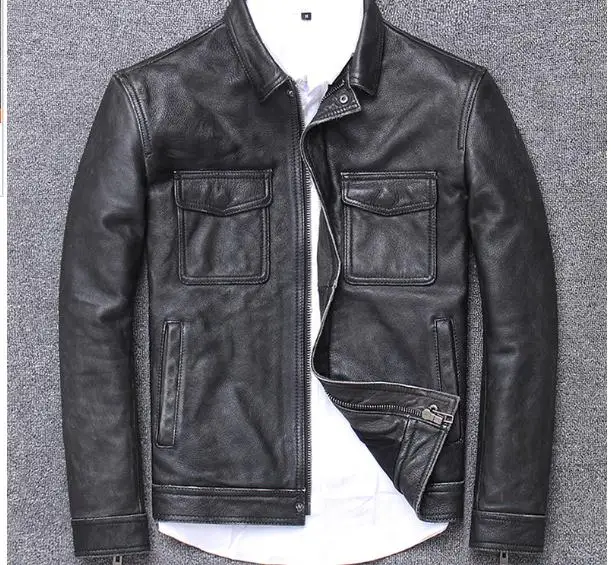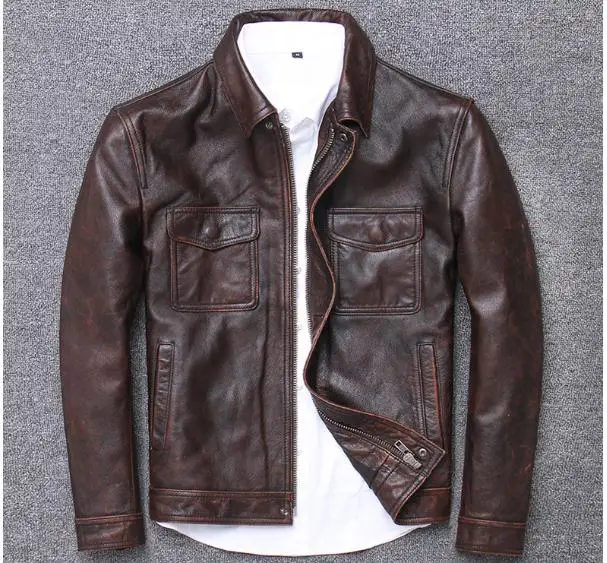 YR! Бесплатная доставка, куртка из воловьей кожи, мужское пальто из натуральной кожи, винтажная повседневная кожаная верхняя одежда, Классическая кожаная одежда