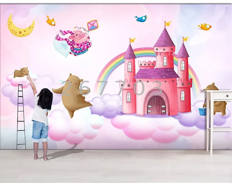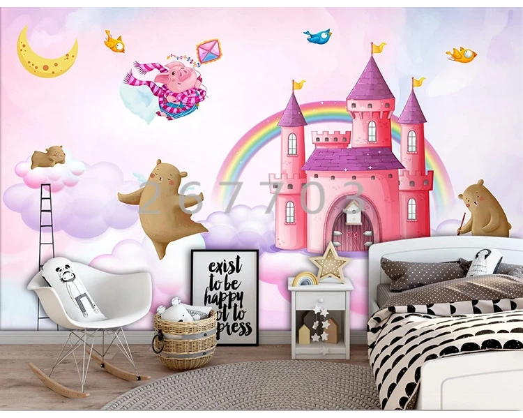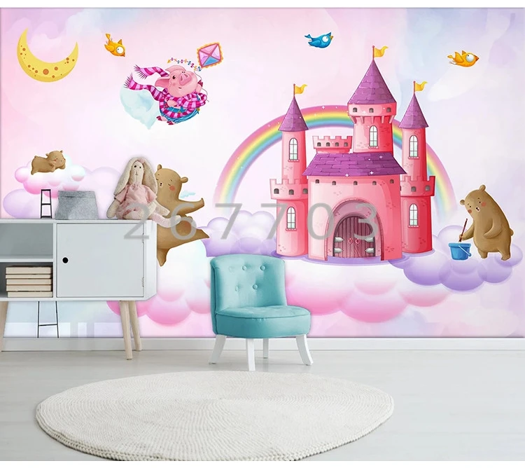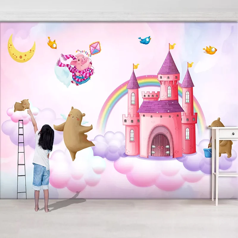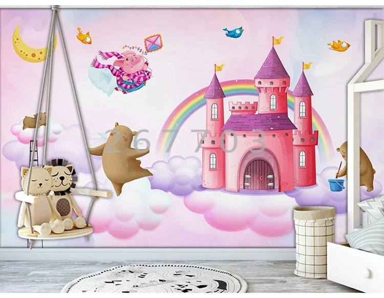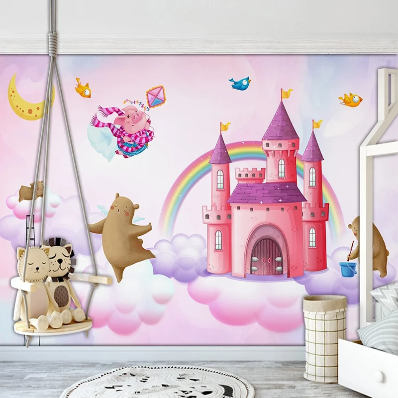 Ручная роспись акварелью замок Собака Медведь свинья птица детская комната фон украшение стены Настенные обои пользовательская фотография живопись