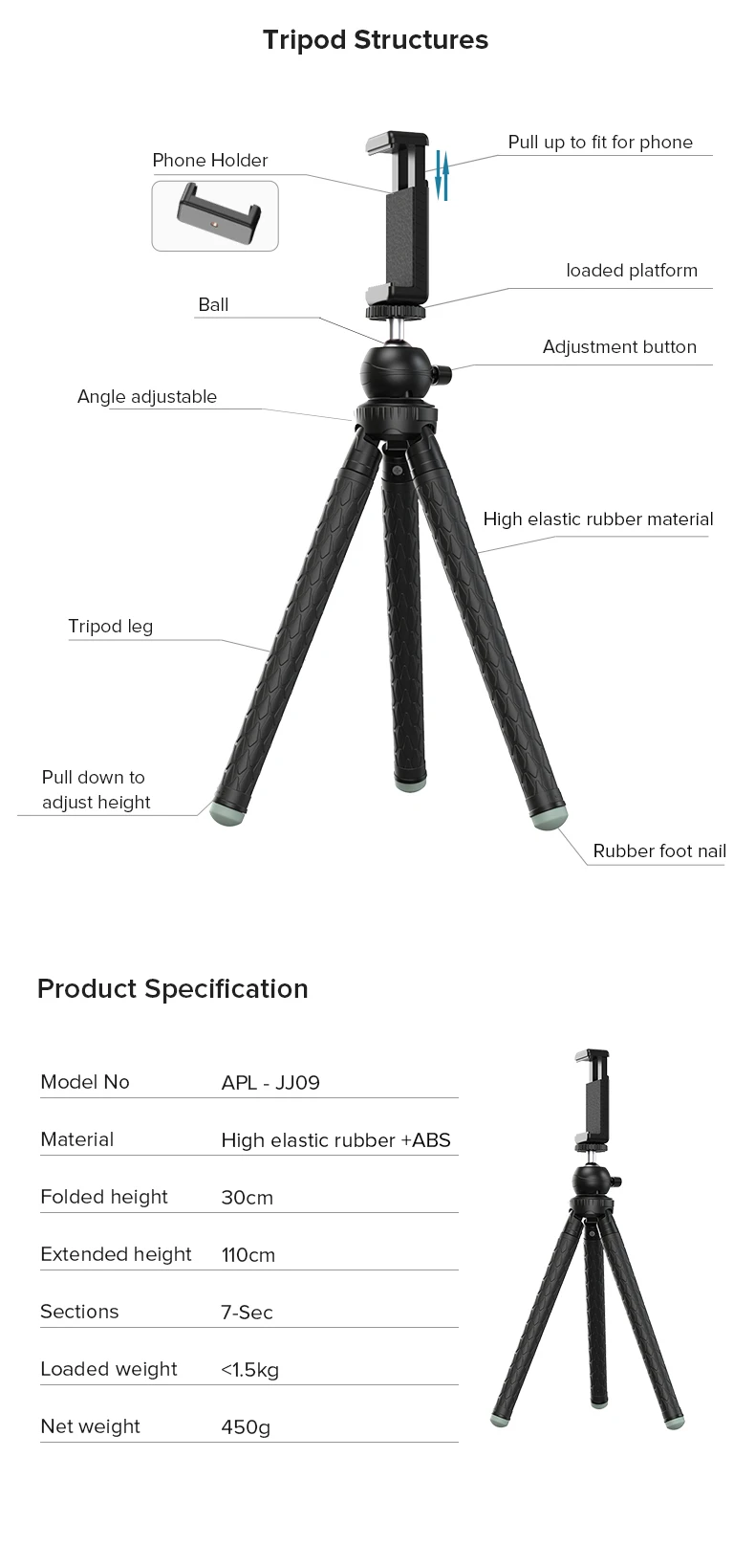 Складной гибкий штатив APEXEL для SLR-камер, профессиональный вращающийся на 360 градусов вертикальный держатель для телефона, для съемки, для Gopro, Sony, Nikon