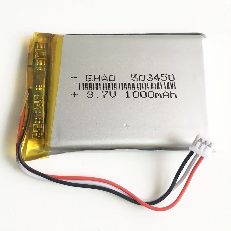 Литий-полимерный аккумулятор 3,7 в, 1000 мАч, 503450 JST, 1,25 мм, 3pin, Липо-полимерный аккумулятор для MP3 DVD PAD, камеры, рекордера, динамика