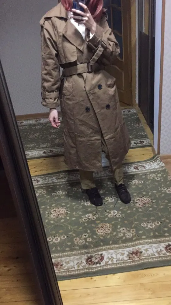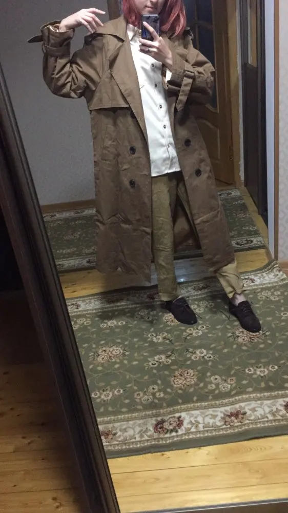 Плащ высокого качества, очень стильный. Выглядит точно так же, как на картинке. На мой рост 161 см, я сделал M, выглядит немного больше, длина до середины икры. Спасибо продавцу. Я рекомендую.