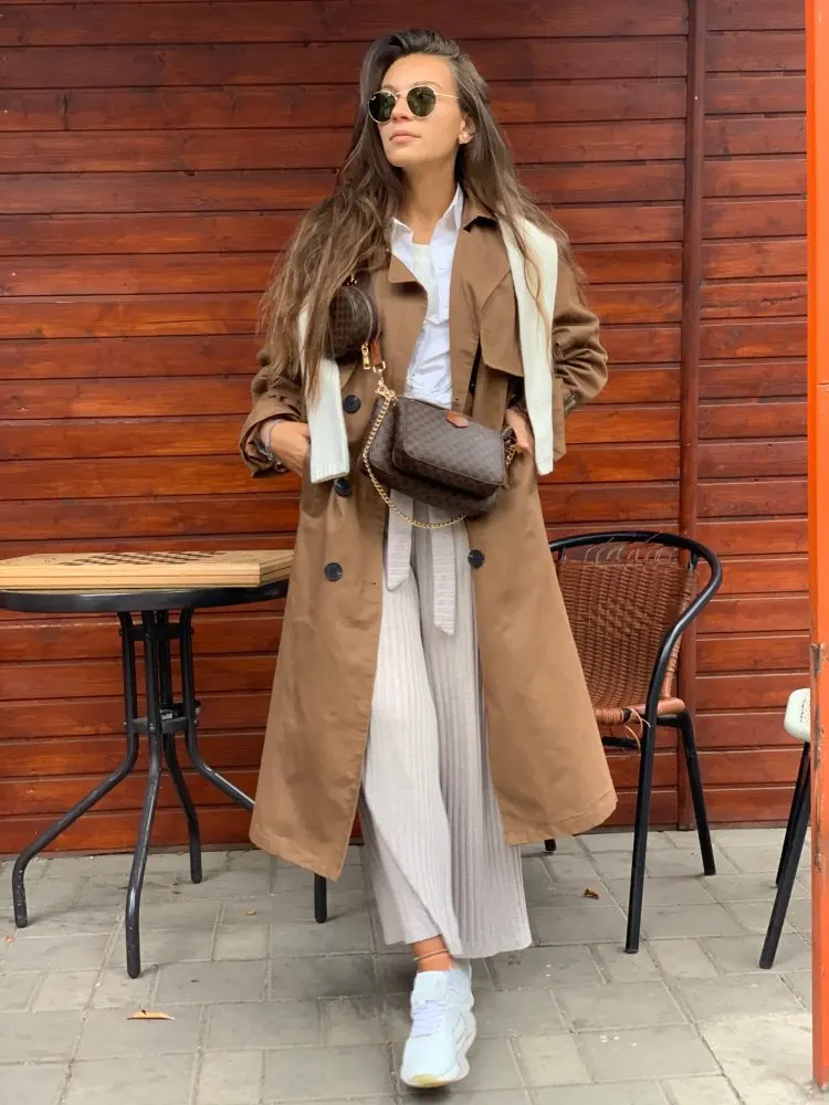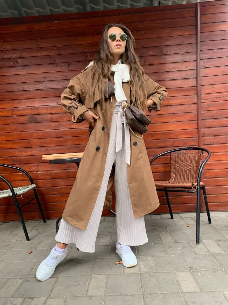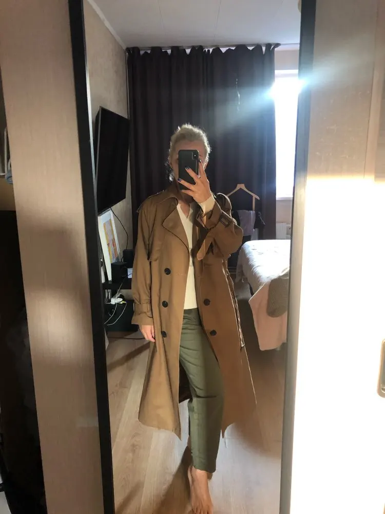 Офигенный тренч! Выглядит дорого, тяжелый, на +10+15 прекрасно, ношу не снимая, на 44 (рост 165, вес 53) заказала s - больше однозначно не надо, будет сидеть как мешок, и так получился оверсайз. Качество пушка , я ооооочень довольна