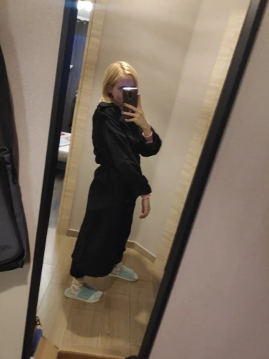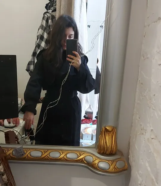 Заказала размер s так как сама ношу xxs-xs при росте 154, плащ сел хорошо, но думала будет чуть длиннее чем есть. Материал плотный, на ощупь приятный