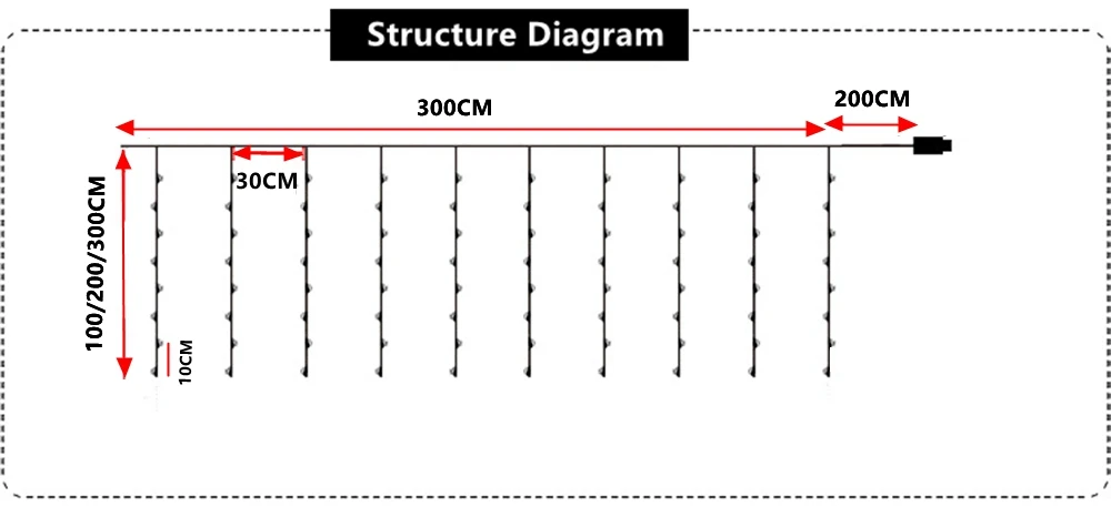 Параметры Описание (ШхВ): 3 м x 1 м/3x 2 м/3x3m Светодиод: 100 светодиодов (3x1 м) / 200 светодиодов (3x2 м) / 300 светодиодов (3x3 м) Цвет: белый/теплый белый/многоцветный/синий Режим контроллера: 8 Ведущая проволока: 2 м Посылка включает в себя 1x светодиодный светильник для штор