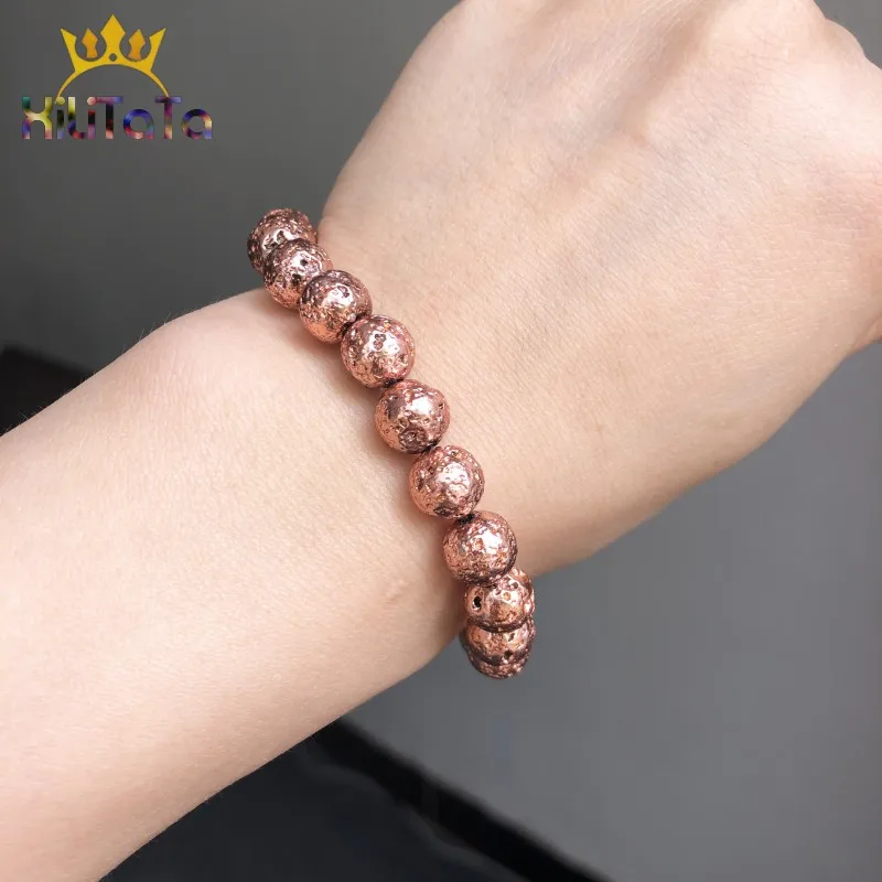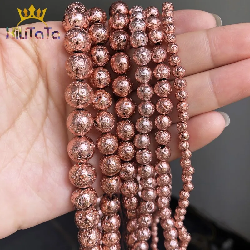 Бусины из натурального камня с покрытием под розовое золото, круглые бусины из вулканической лавы, для самостоятельного изготовления ювелирных изделий, аксессуары для браслетов 15 дюймов, 46810 мм
