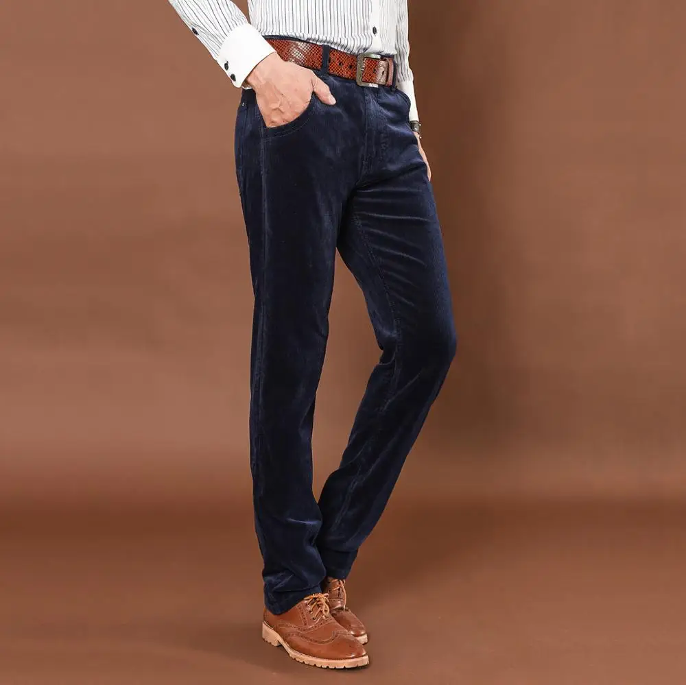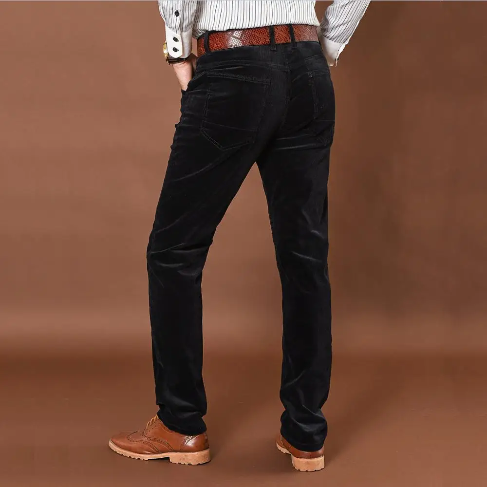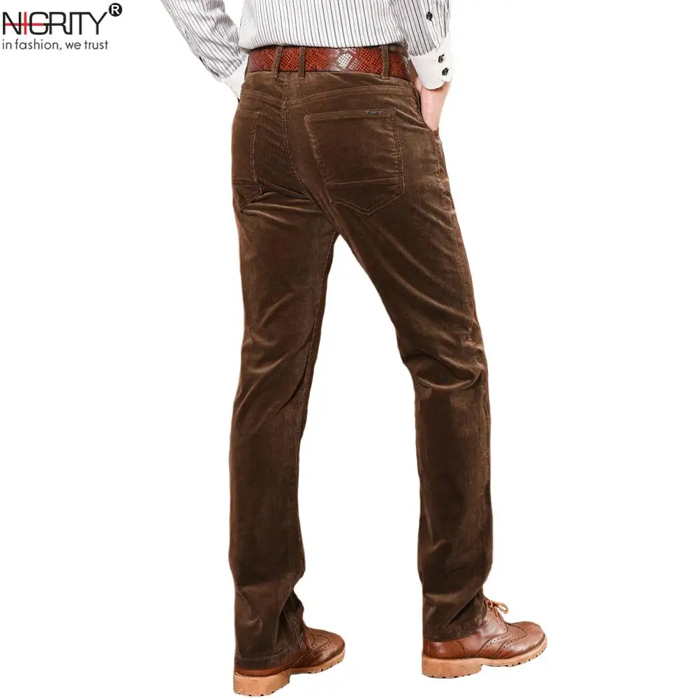 NIGRITY мужские зимние плотные брюки со средней талией, свободные эластичные вельветовые брюки, Длинные прямые деловые повседневные брюки, 6 цветов
