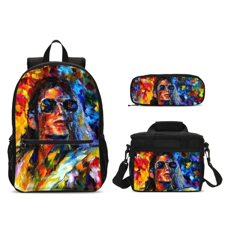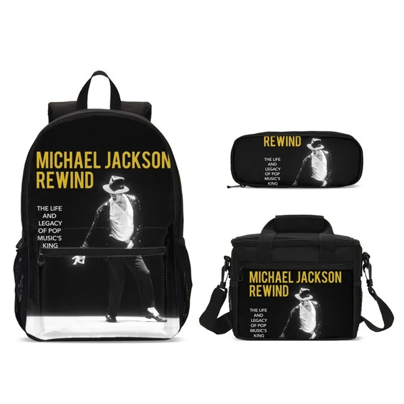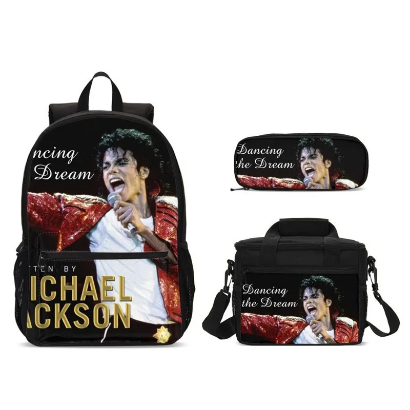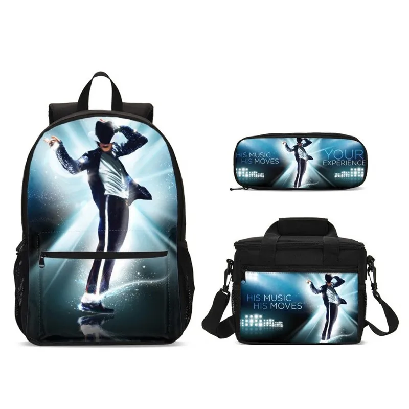 Детские школьные ранцы с контейнером для еды, модный школьный рюкзак для мальчиков-подростков, шт.компл., набор школьных сумок с Майклом Джексоном