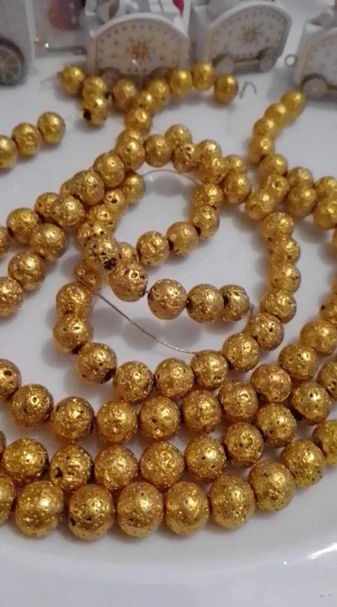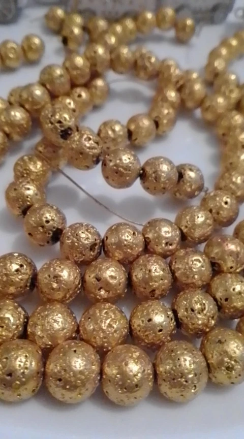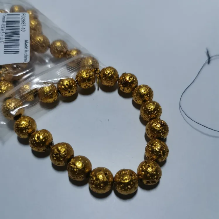 Бусины из натурального камня, круглые бусины-гвоздики под золото, вулканическая лава, для самостоятельного изготовления ювелирных изделий, браслет, аксессуары 15 дюймов, 46810 мм