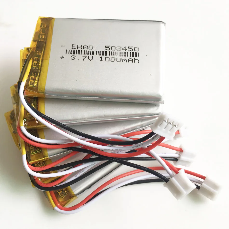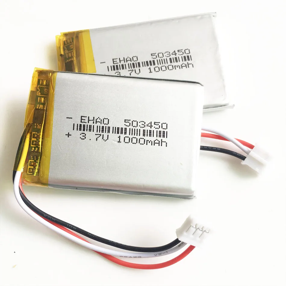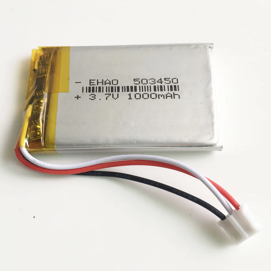 Литий-полимерная аккумуляторная батарея, 3,7 в, 1000 мАч, 503450 JST PH, 2,0 мм, 3 контакта