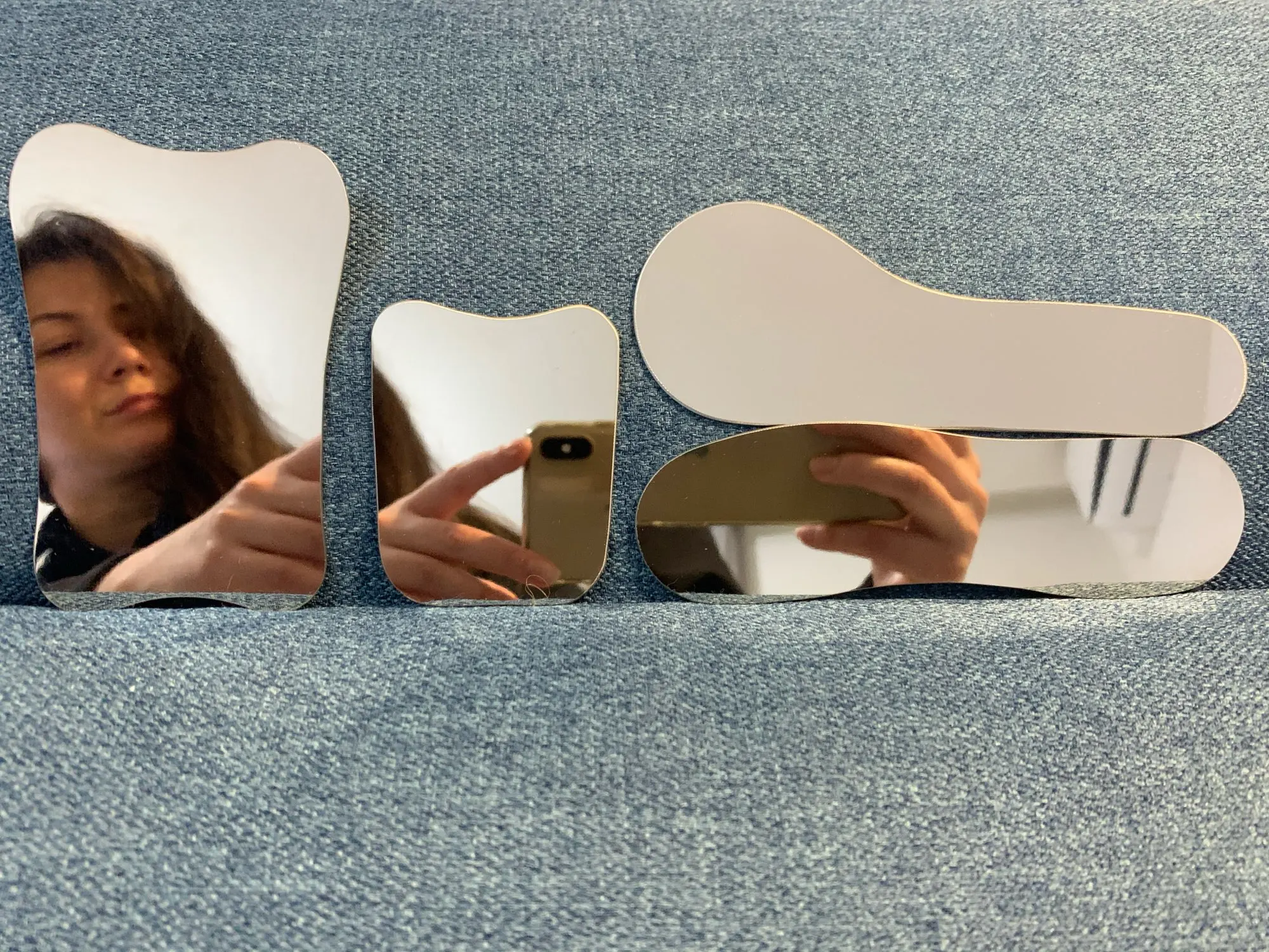 Это не так, как на картинке, зеркала действительно маленькие и края острые, так что раздражают слизистые оболочки