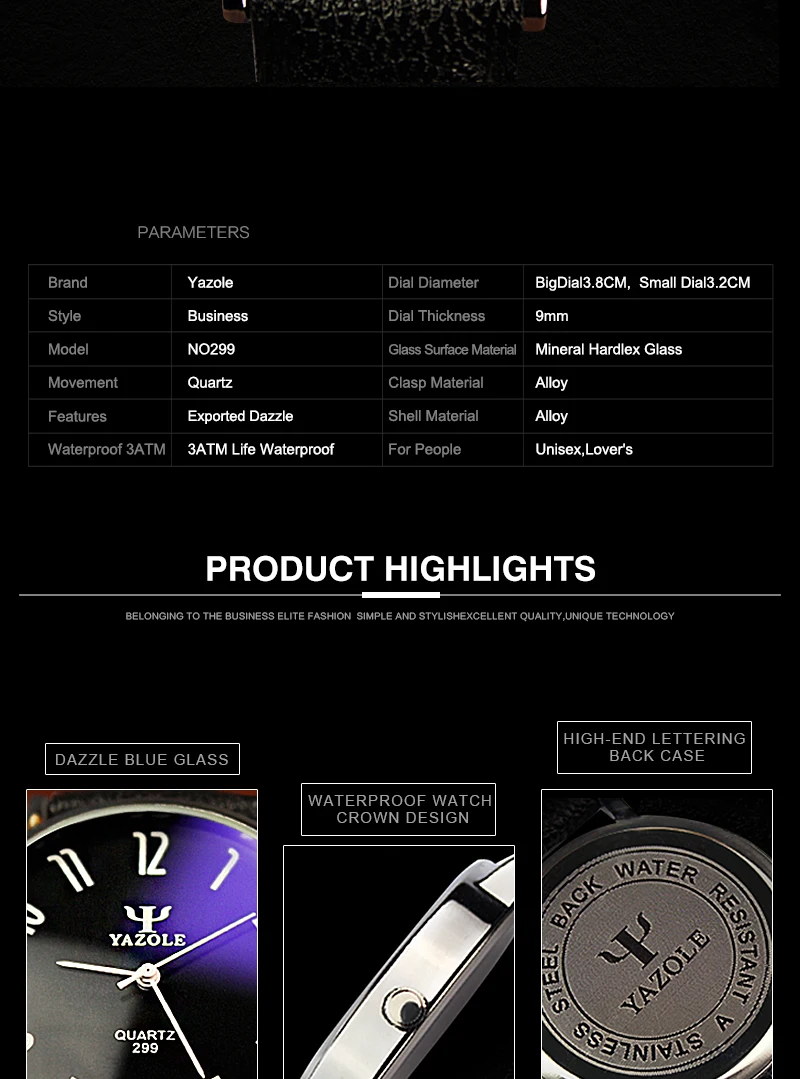 Дизайнерские часы YAZOLE для влюбленных, кварцевые часы для мужчин, модные женские наручные часы, женские часы из искусственной кожи, синий луч, relogio reloj