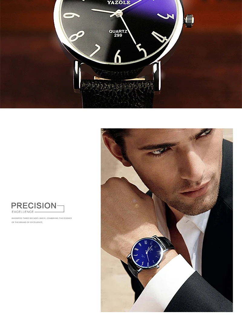 YAZOLE модные повседневные часы мужские часы Роскошные синие стекля...