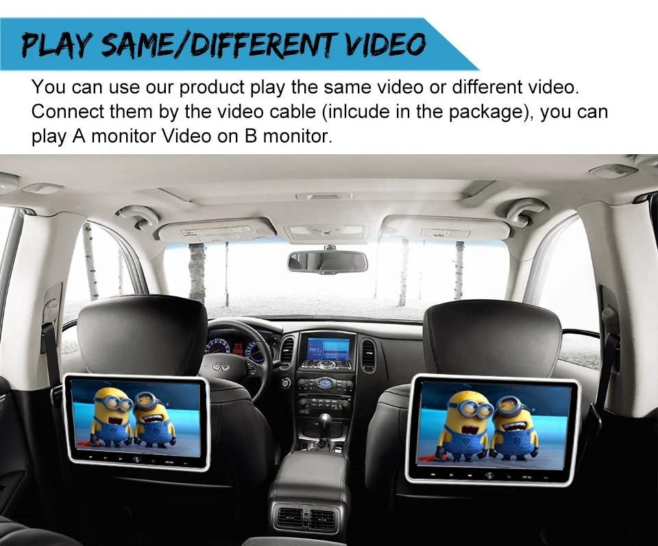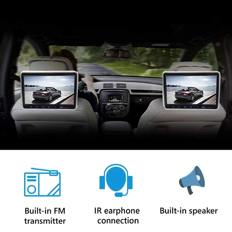 Монитор на подголовник автомобиля, 10,1 дюйма, 1024x60 0, HDMI, ИК, AV, FM, USB