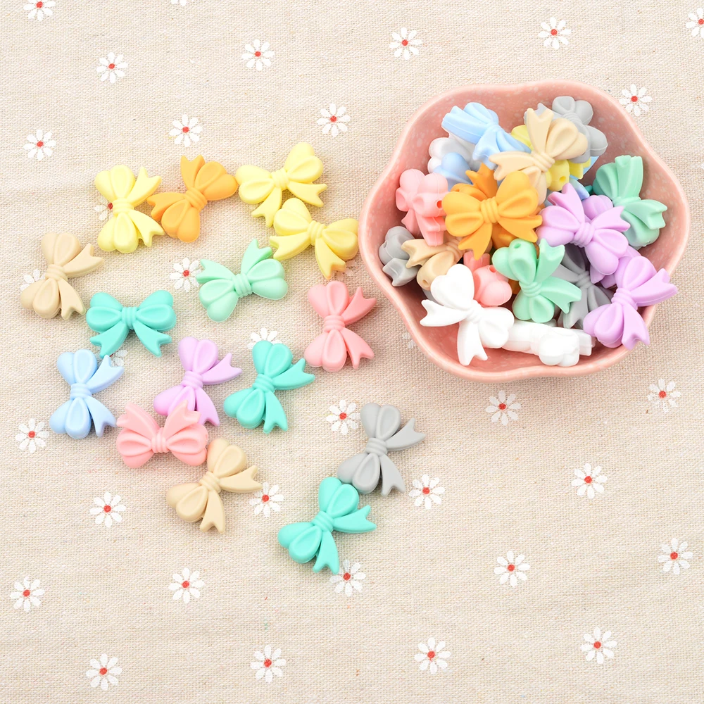 Силиконовые бусины LOFCA с бантом, 10 шт., без бисфенола А, бусины ...