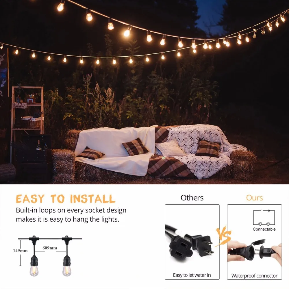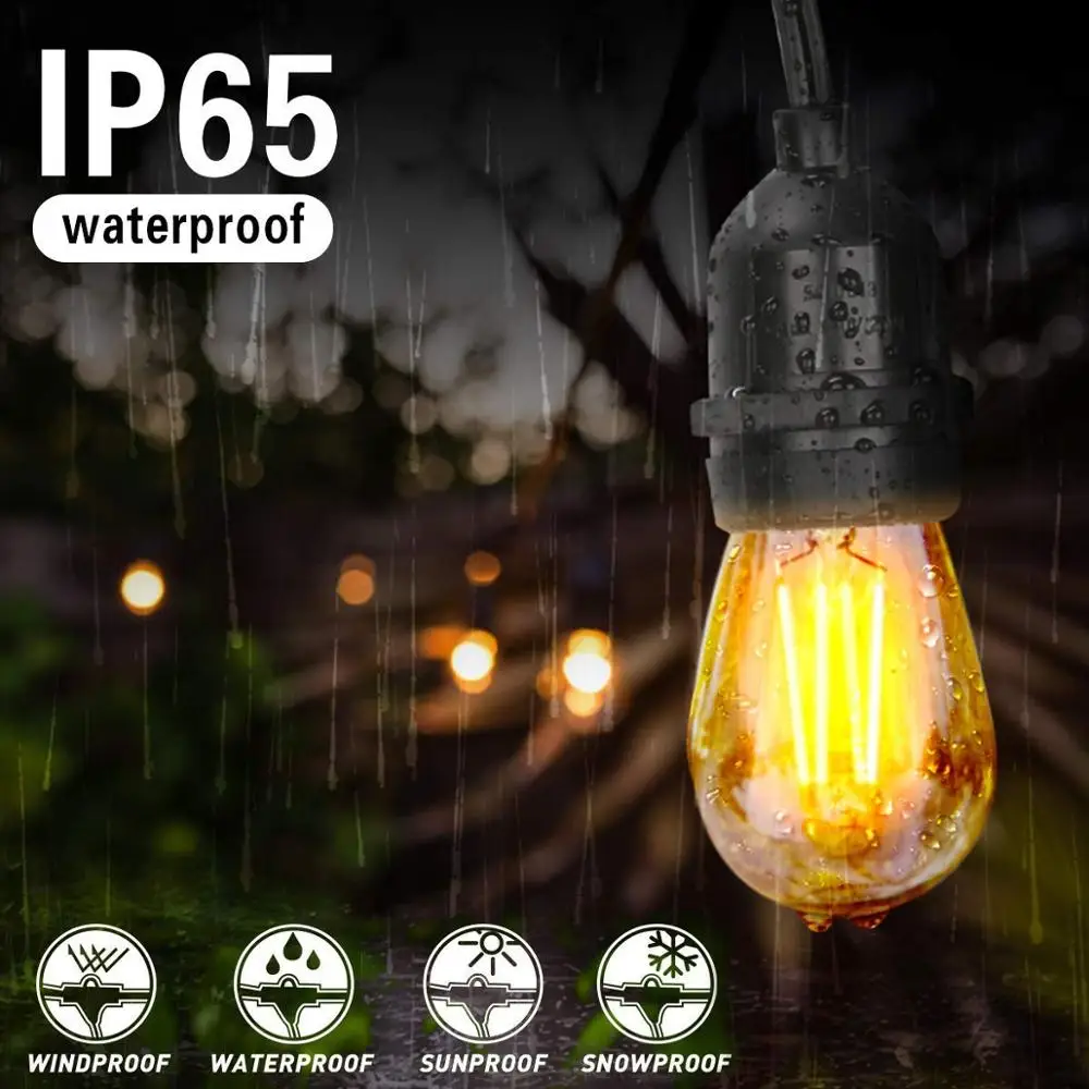 Уличная светодиодная гирлянда с круглым светом, IP65, 16 футов, 10 лампочек, для внутреннего дворика, вечеринки, подвессветильник светильник для свадьбы, бистро, кафе, заднего двора