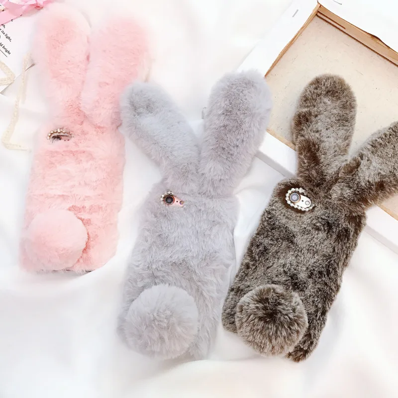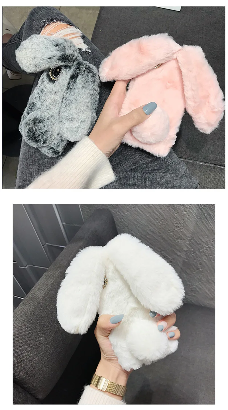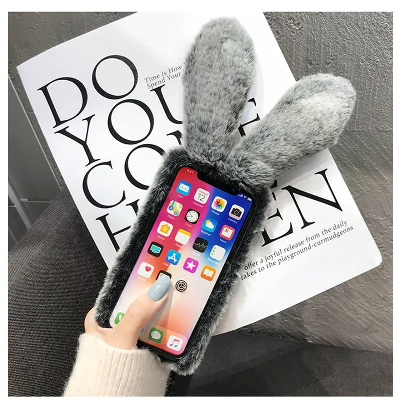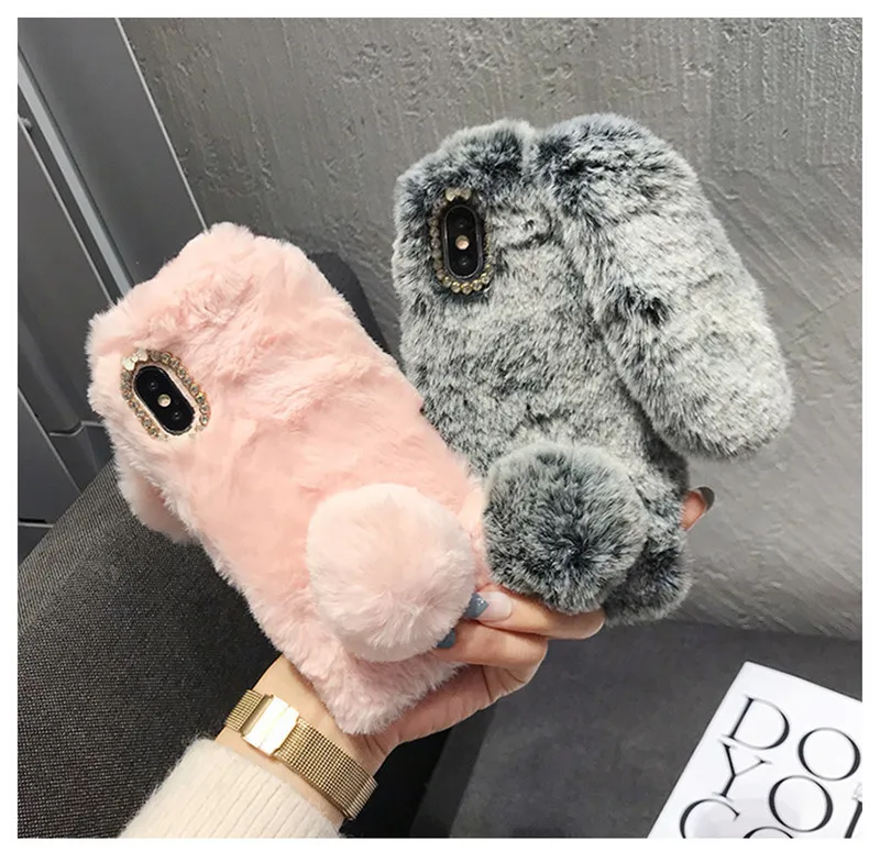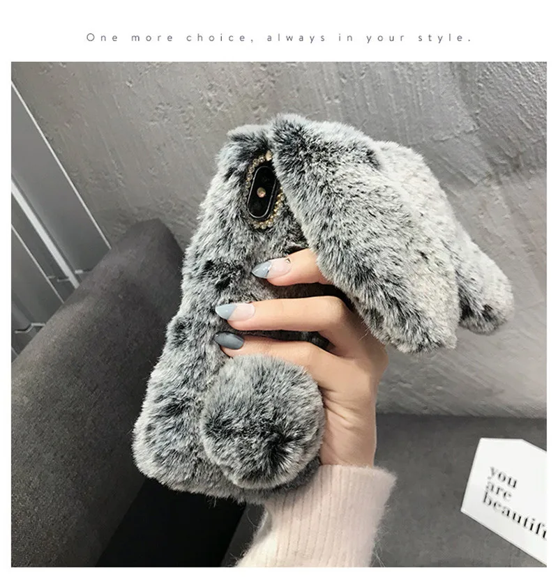 Силиконовый чехол с пушистым кроликом, плюшевый чехол для телефона ...
