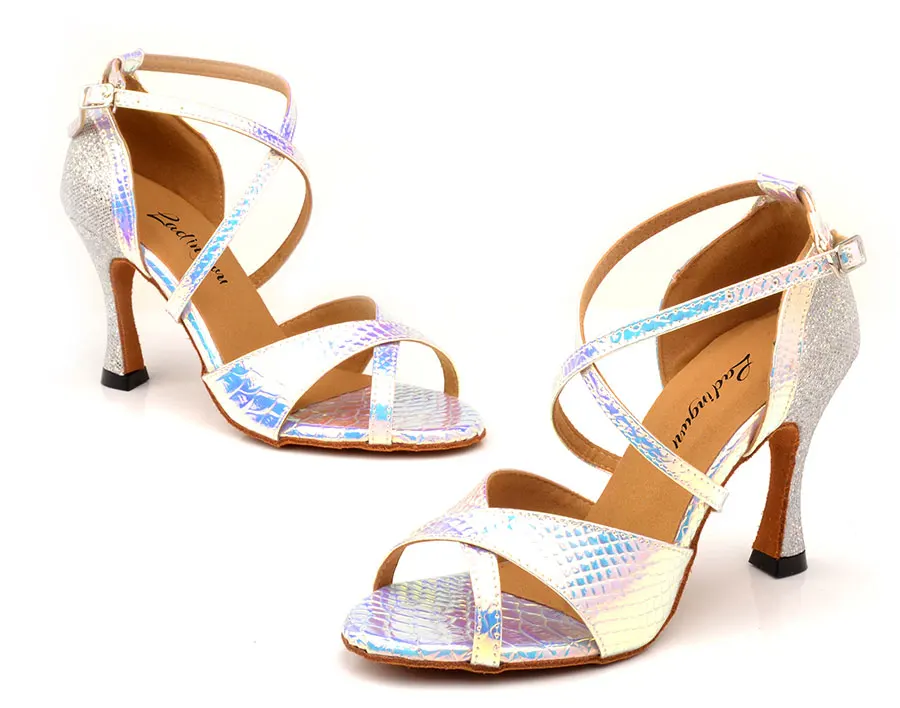 Туфли женские для латинских танцев, хамелеон блестящий, 2020