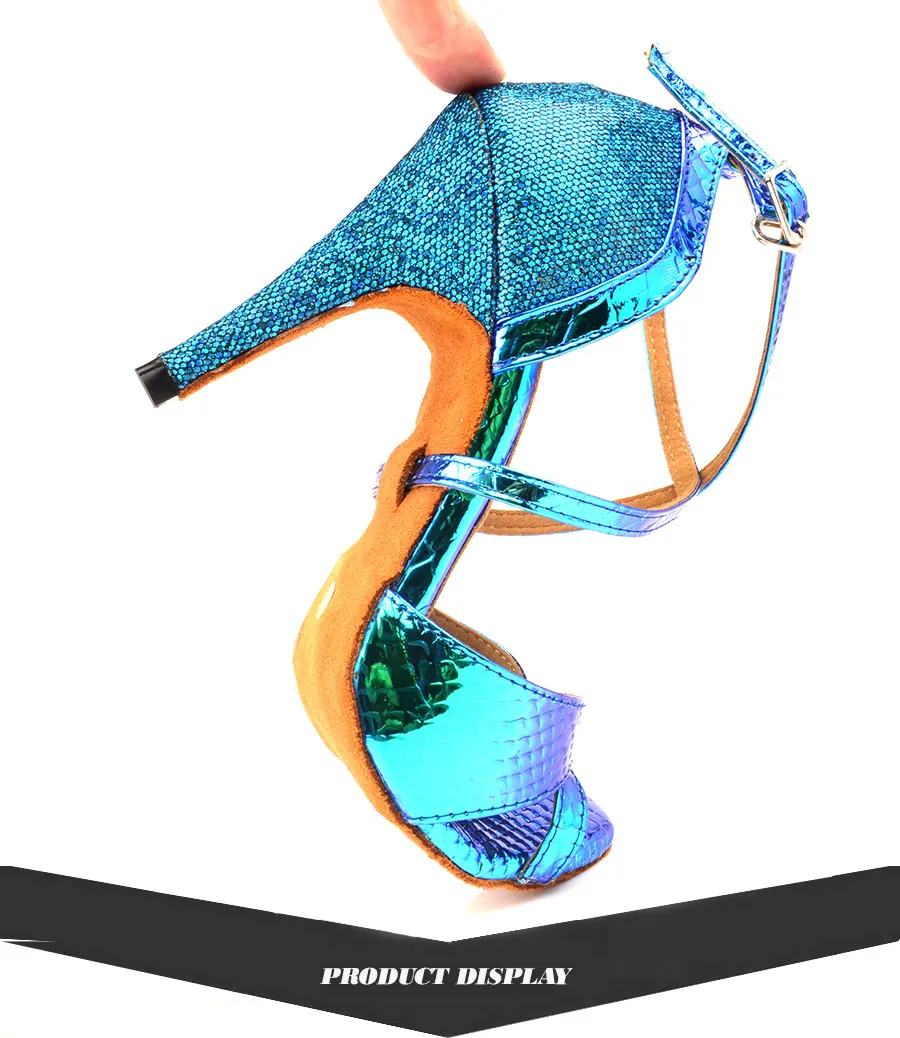 Женские туфли для латиноамериканских танцев, серебристые, синие